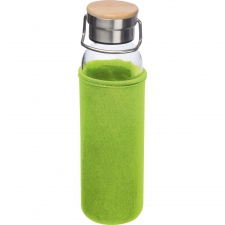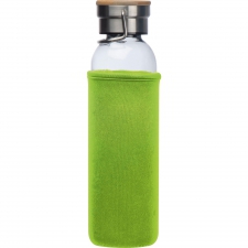 Szklana butelka o pojemności 600 ml, z pokrywką ze stali nierdzewnej i bambusowym zamknięciem. Butelkę przed uszkodzeniami chroni neopropanowe etui.
