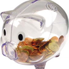 Zabawna świnka - skarbonka wykonana z transparentnego plastiku.