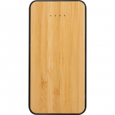 Bezprzewodowa ładowarka i power bank w jedym. Ładowarka posiada drewnianą obudowę, baterię o pojemności 8000 mAh, moc 5 wat, wyjście USB i typu C. W zestawie kabelek do ładowania.