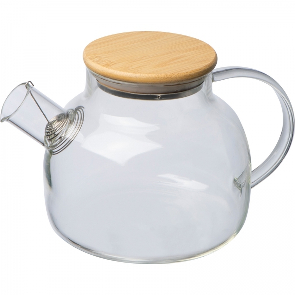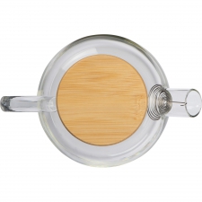 Szklany dzbanek o pojemności 1 000 ml. Dzbanek wyposażony w bambusowe wieczko oraz wyjmowaną spiralę umieszczoną w szyjce, dzięki której do kubka nie przedostaną się np. liście herbaty.