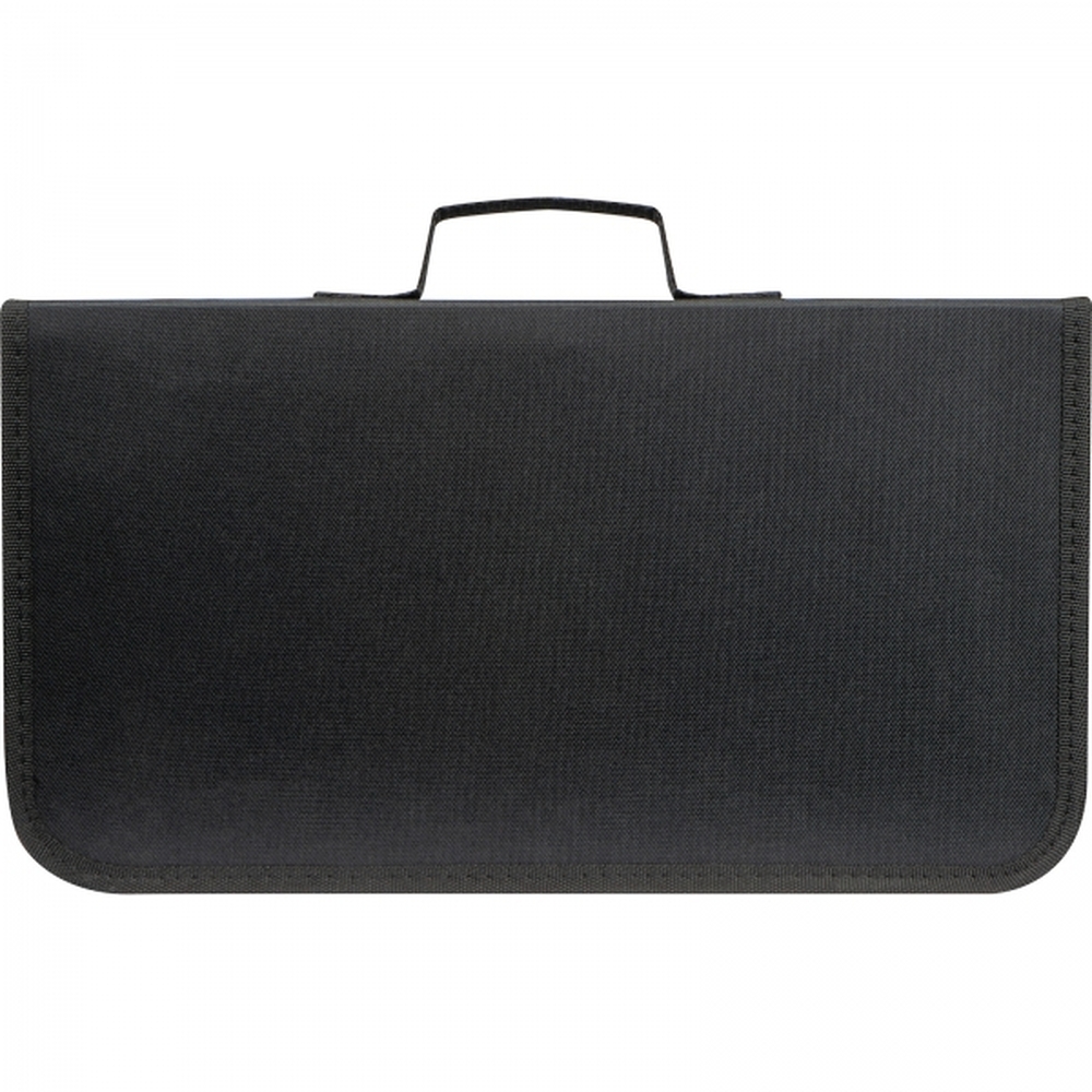 Praktyczny zestaw na grilla, składający się z dużej deski do krojenia, dwóch noży z ostrzem wykonanym ze stali nierdzewnej, sczypce, widelec do mięsa oraz ostrzałkę do noży. Całość zapakowana została w poręczne poliestrowe etui w kształcie walizki, zamykane na zamek.