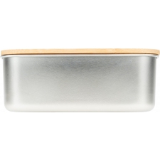 Idealnie sprawdzi się jako upominek dla firm, klientów czy współpracowników, podkreślając troskę o środowisko i zdrowy styl życia. W dodatku na pudełku lub produktach z zestawu możesz zamieścić nadruk lub grawer.Lunch box:Lunch box o pojemności 1000 ml wykonany jest z trwałego aluminium, co zapewnia lekkość i wytrzymałość. Wieczko z bambusa nie tylko dodaje elegancji, ale także jest wyposażone w silikonową uszczelkę, która gwarantuje szczelność, dzięki czemu doskonale nadaje się do przechowywania suchego prowiantu, takiego jak przekąski, owoce czy warzywa.