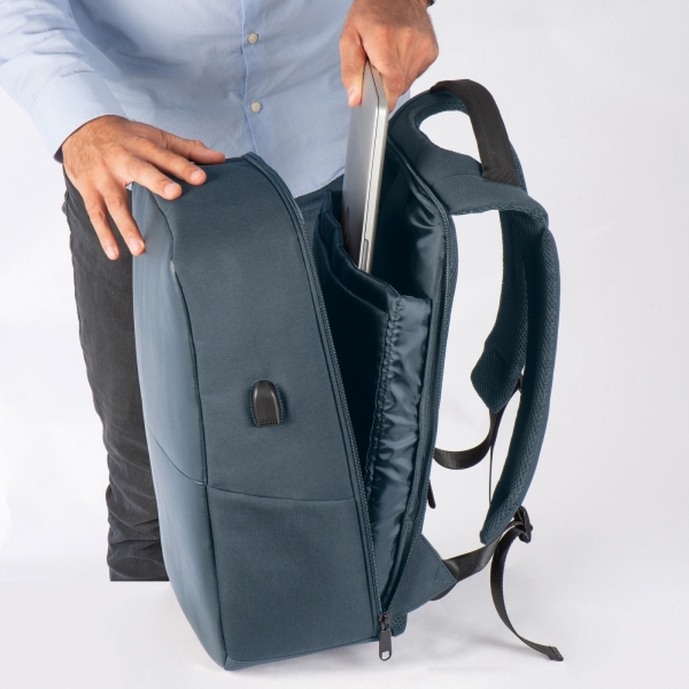 Wysokiej jakości, wodoodporny plecak, wykonany w 65% z nylonu i w 35% z poliuretanu. Posiada port USB oraz wzmacniane, oddychające szelki. Plecak jest bardzo pojemny, ma także miejsce na laptopa do 15,6".