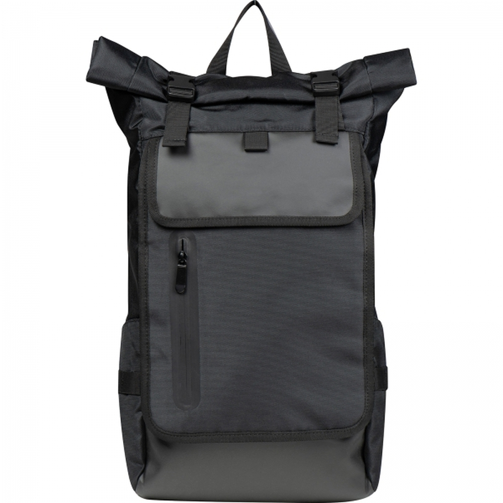 Plecak na laptopa wykonany z poliestru, z wyściełaną przegródką na laptopa o wymiarach 15,6" i wieloma dodatkowymi przegródkami. Plecak ma praktyczne rolowane zamknięcie, dzięki któremu można manipulować jego pojemnością.
