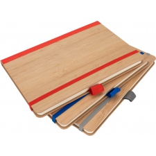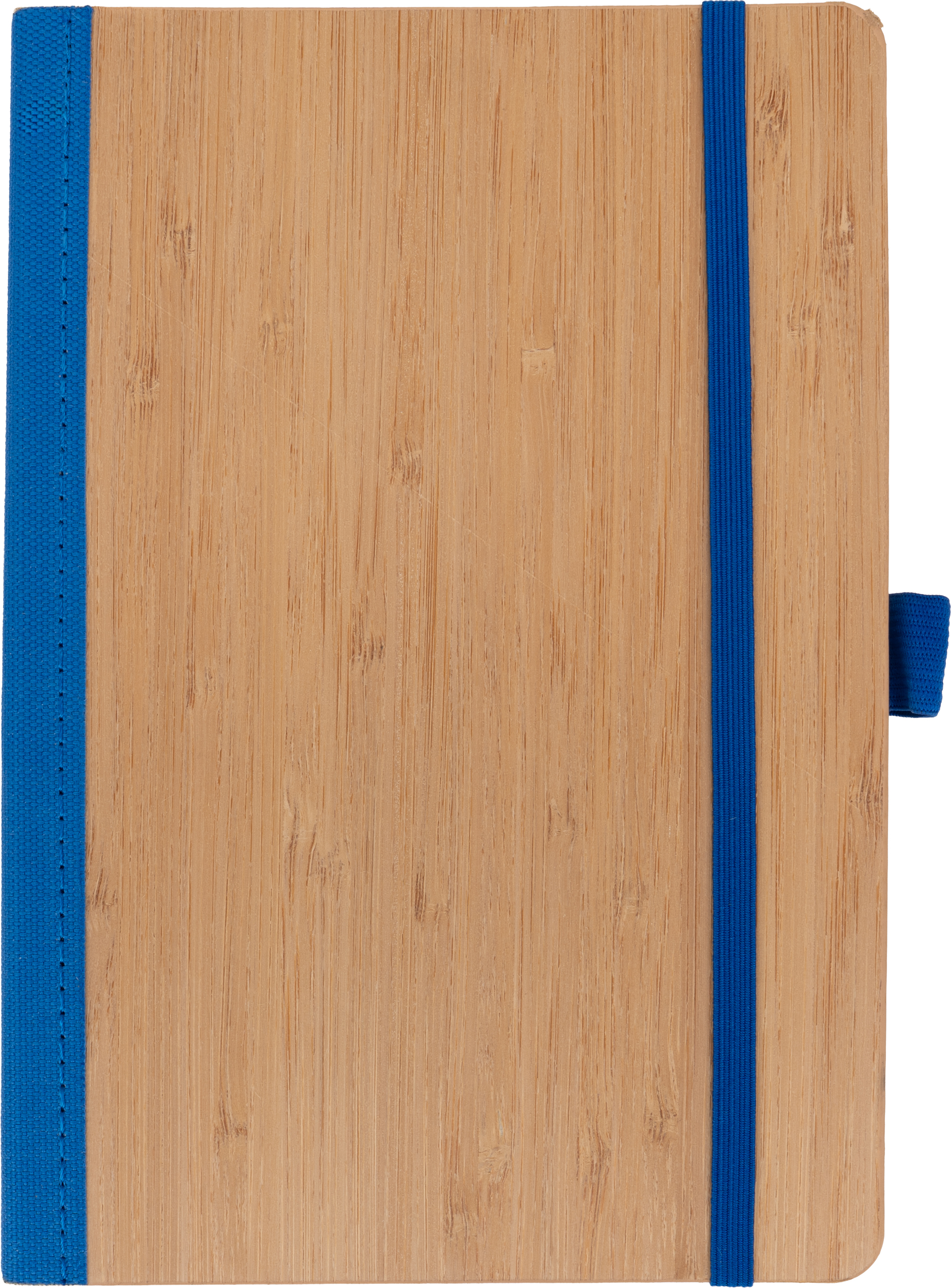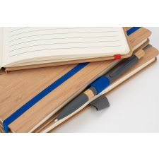 Notes o formacie A5, wykonany z bambusa i poliestru pochodzącego z recyklingu. Notes ma 192 stron w linie, zamknięcie na gumkę i pętelkę na długopis.