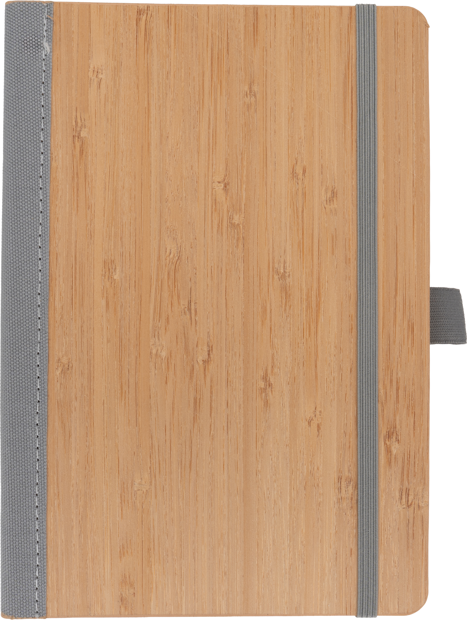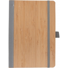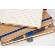 Notes o formacie A5, wykonany z bambusa i poliestru pochodzącego z recyklingu. Notes ma 192 stron w linie, zamknięcie na gumkę i pętelkę na długopis.