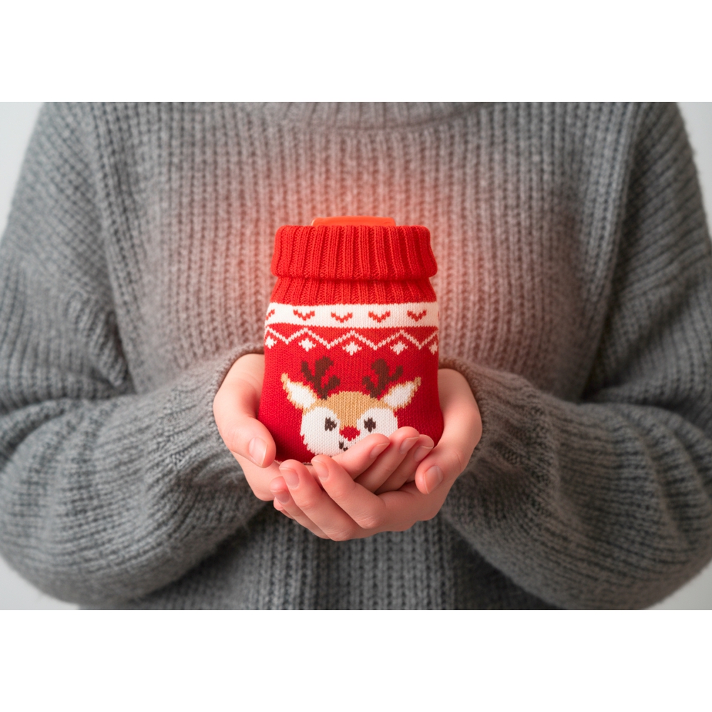 Ogrzewacz do rąk z motywem świątecznym to idealny dodatek na chłodne, jesienno-zimowe wieczory. Wyposażony w dekoracyjny sweterek, który nie tylko nadaje mu uroku, ale także zapewnia komfort użytkowania. Ogrzewacz aktywuje się poprzez zgięcie wewnętrznej metalowej płytki, co powoduje krystalizację płynu wewnątrz i wytwarzanie przyjemnego ciepła, czyniąc go idealnym towarzyszem na chłodne dni.