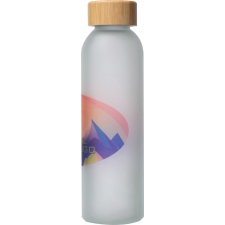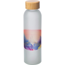 Szroniona butelka z bambusową zakrętką, o pojemności 500 ml. Na butelce można wykonać nadruk full colour sublimacją dookoła butelki.