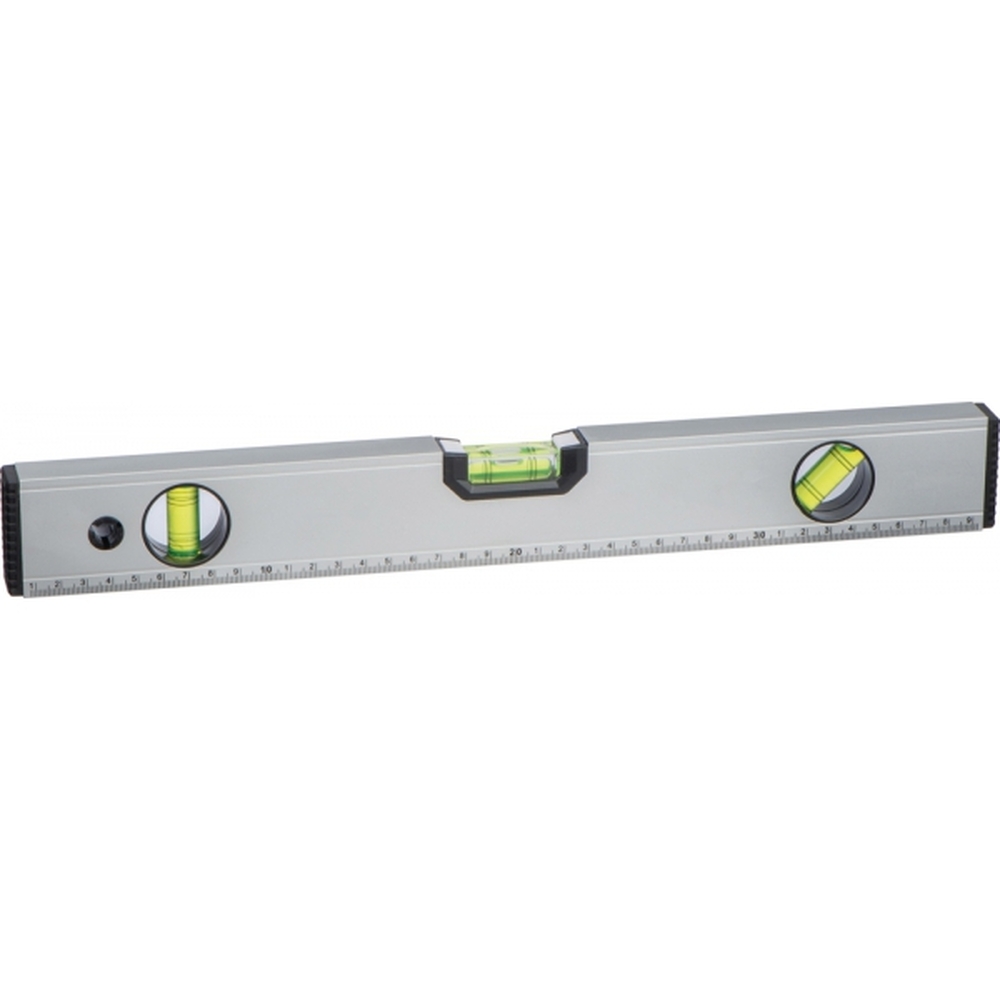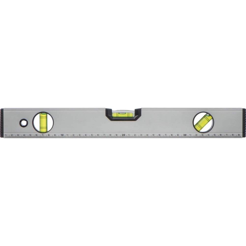 Poziomica wykonana z aluminium, z trzema libelkami - poziom, pion, kąt 45°, magnetyczną podstawą i 40 cm miarką.