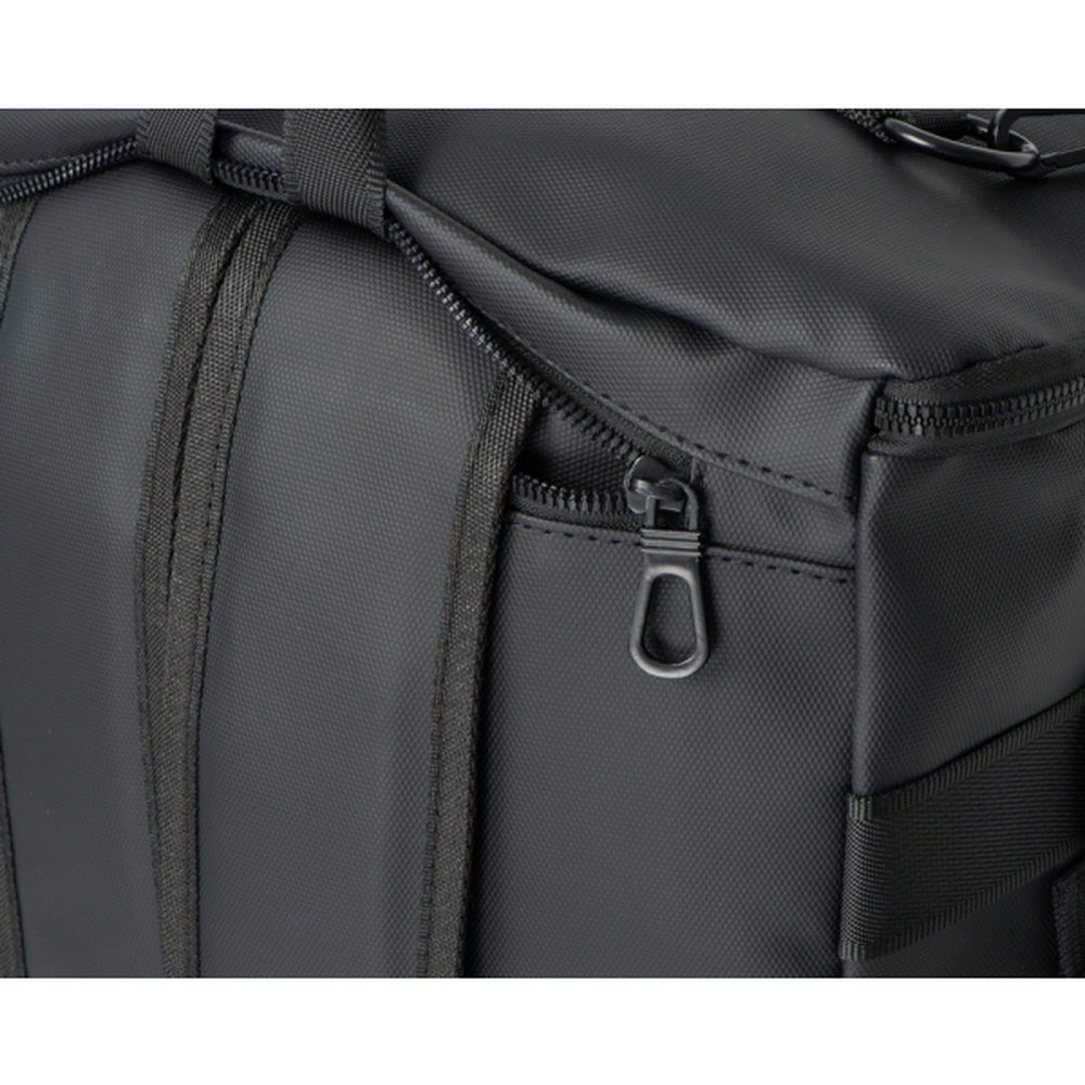 Plecak wykonany z poliestru 900D, o pojemności 19 litrów. Szelki można schować wewnątrz plecaka i nosić go jak torbę.
