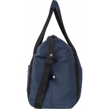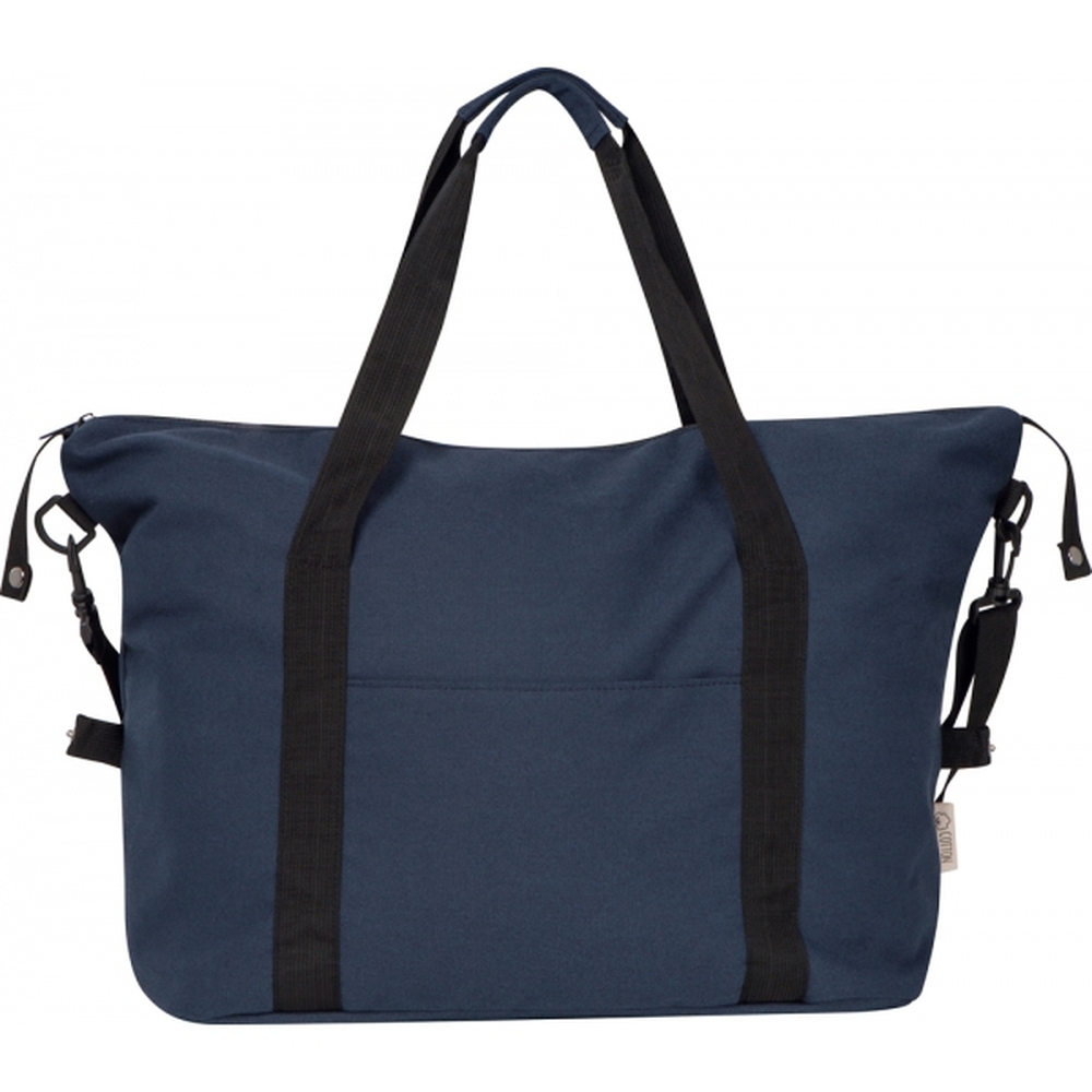 Wygodna, przestronna i praktyczna torba podróżna wykonana z bawełny pochodzącej z recyklingu to doskonały wybór dla osób ceniących zarówno funkcjonalność, jak i świadome podejście do środowiska. Dzięki przemyślanej konstrukcji sprawdzi się zarówno podczas krótkich wyjazdów, weekendowych wypadów, jak i jako torba sportowa na siłownię czy zajęcia fitness.Wyposażona w dwa solidne, krótkie uchwyty umożliwiające wygodne przenoszenie torby w dłoni, a także odpinany, regulowany pasek na ramię, który zapewnia maksymalny komfort użytkowania i pozwala na dostosowanie sposobu noszenia do własnych preferencji.Dzięki obszernej komorze głównej torba pomieści wszystkie niezbędne rzeczy - ubrania, kosmetyki czy sprzęt sportowy. Trwały materiał sprawia, że torba jest odporna na codzienne użytkowanie, a klasyczny design i stonowana kolorystyka czynią ją uniwersalnym dodatkiem do każdej stylizacji.