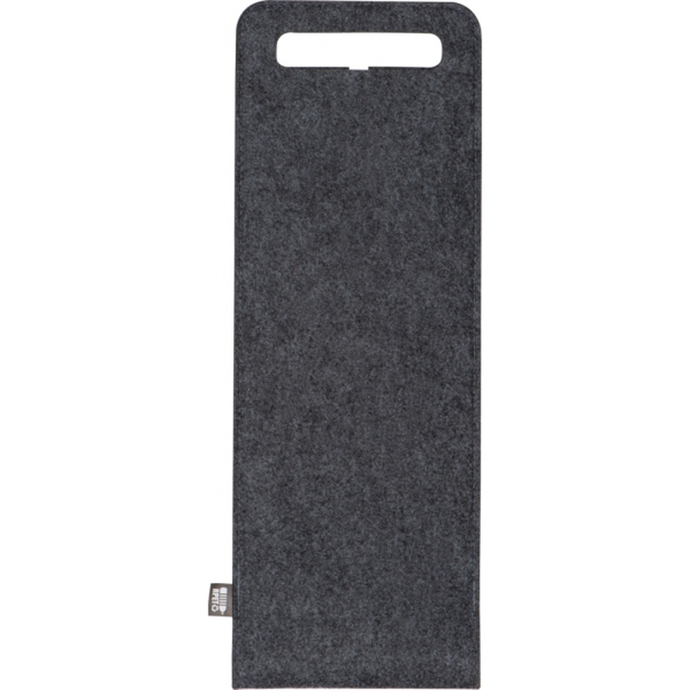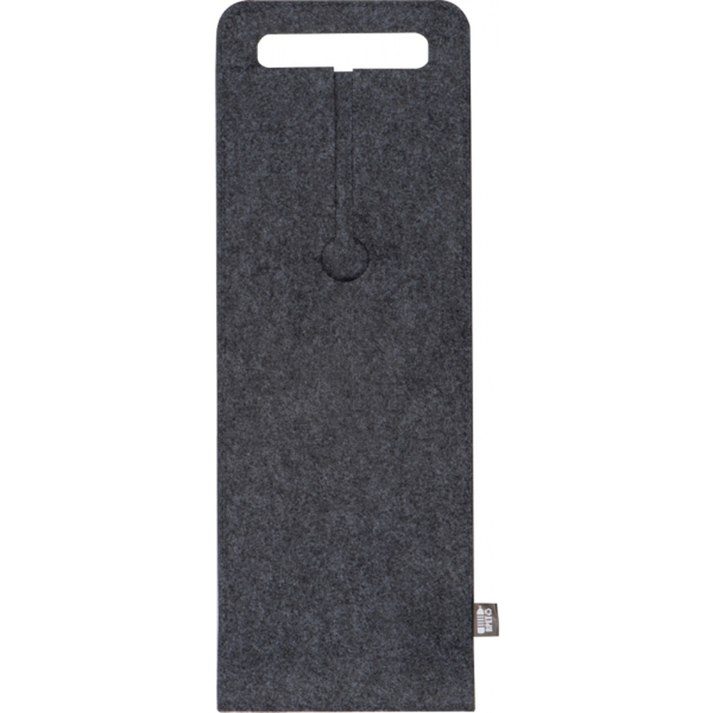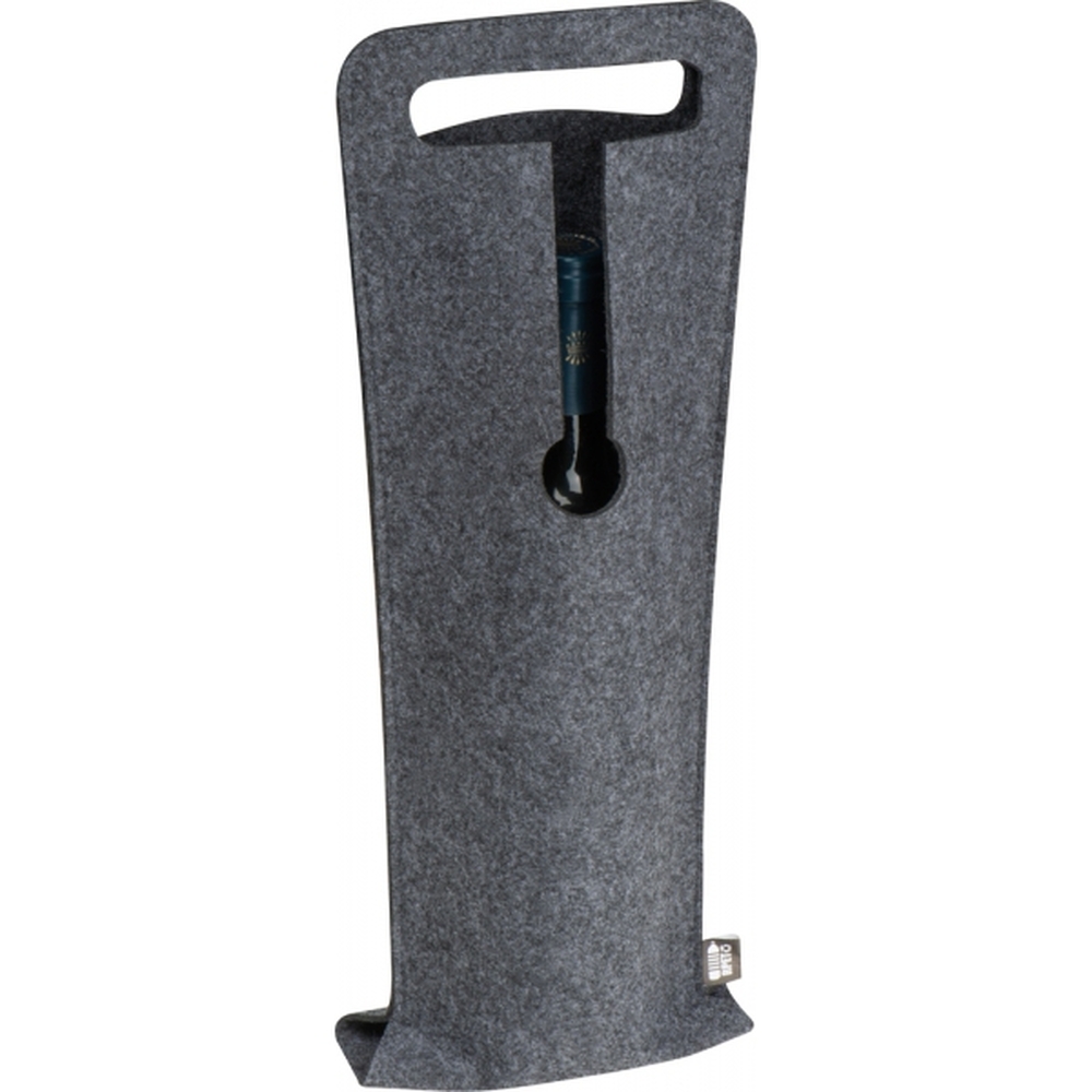 Torebka na butelkę wina, wykonana z filcu pochodzącego z recyklingu. Pomieści butelki do średnicy 8,9 cm.