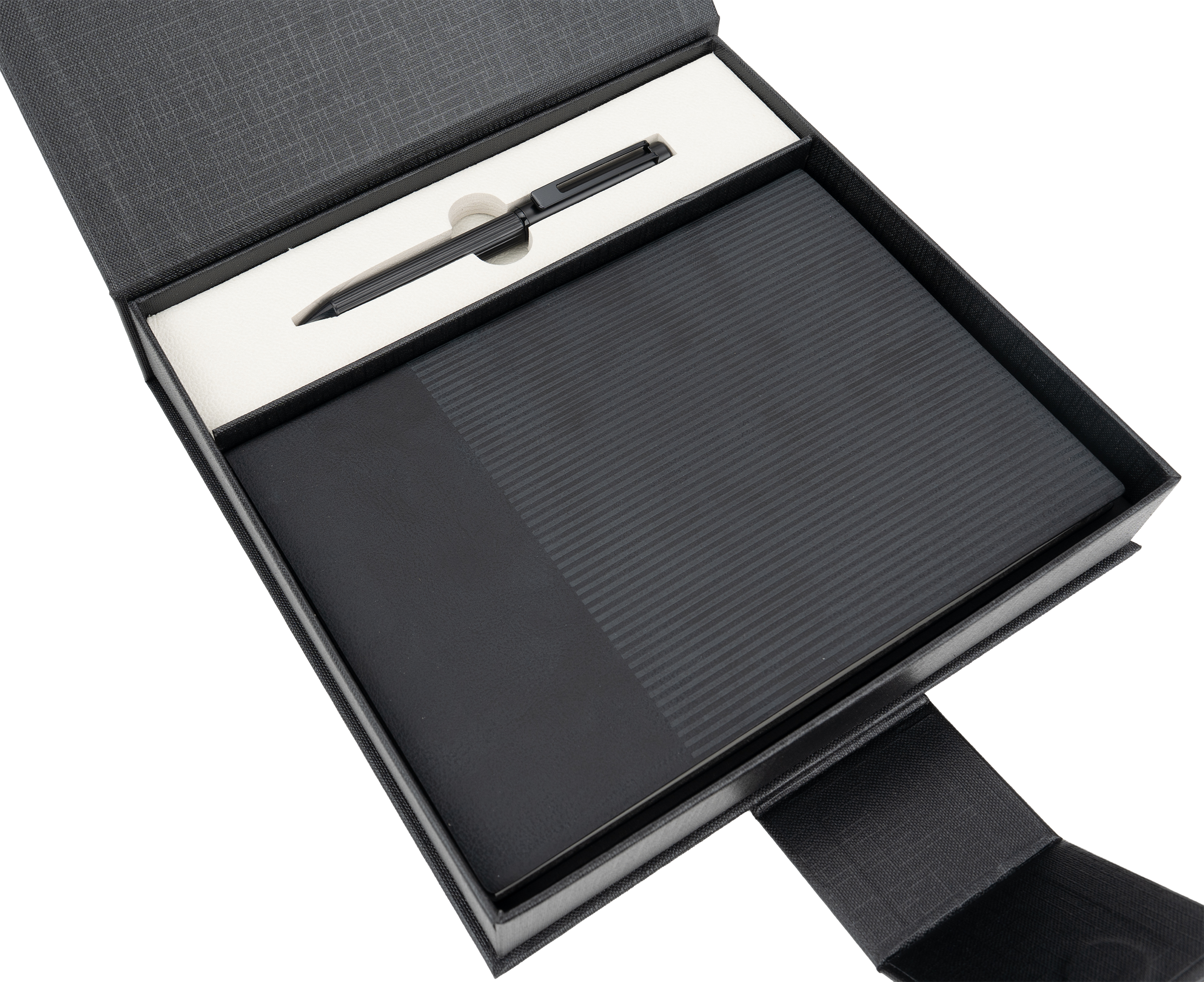 Całość jest zapakowana w ozdobne pudełko z magnetycznym zamknięciem. Zestaw można spersonalizować, np. dodając logo firmy na pudełku lub element dekoracyjny, co sprawia, że jest to doskonały wybór na prezent, który pozostawi trwałe wrażenie na odbiorcy.Cechy ogólne: Notes z recyklingowanego papieru o gramaturze 80.