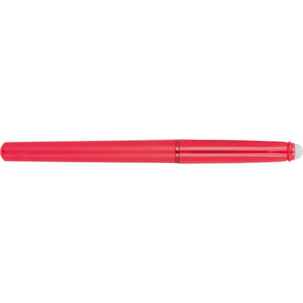 Plastikowy długopis z żelowym wkładem i gumką do mazania w zatyczce. Kolor wkładu jest taki sam, jak kolor korpusu.