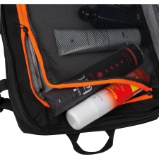 Plecak podróżny otwierany jak walizka, z trzema przegródkami zapinanymi na zamek. Dobrze zorganizowane wnętrze wyposażone jest w przegródkę na laptopa, wiele mniejszych przegródek oraz kieszeń z siatką do przechowywania kosmetyków. Pojemność 22l, dzięki bocznym paskom można powiększyć do 37l.