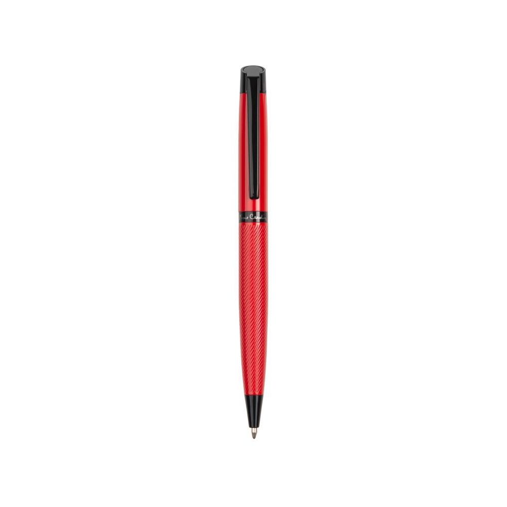 Elegancki metalowy długopis Pierre Cardin. Długopis posiada mechanizm obrotowy, a dolna część korpusu ozdobiona jest strukturalnym wzorem. Posiada wysokiej jakości niebieski wkład z końcówką 1 mm. Zapakowany w luksusową kieszeń, posiada certyfikat autentyczności.