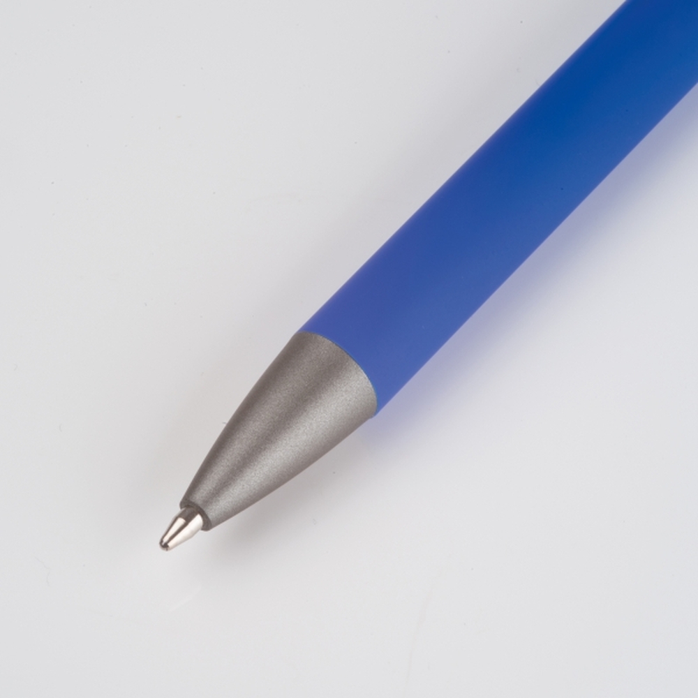 Długopis soft touch, wykonany z aluminium pochodzącego z recyklingu, z półżelowym wkładem piszącym na niebiesko, z końcówką 0,5 mm.