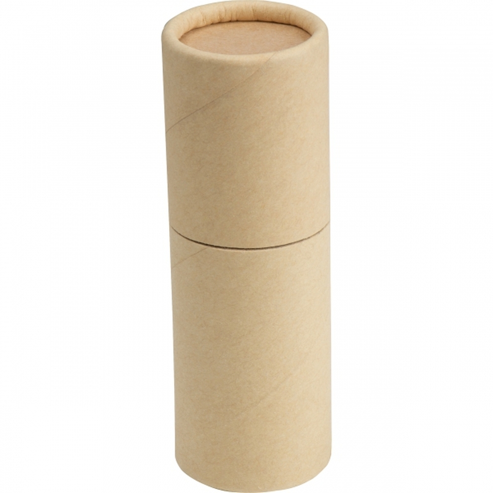 Zestaw 12 kolorowych kredek, zapakowanych w cylindryczne, kartonowe pudełko.