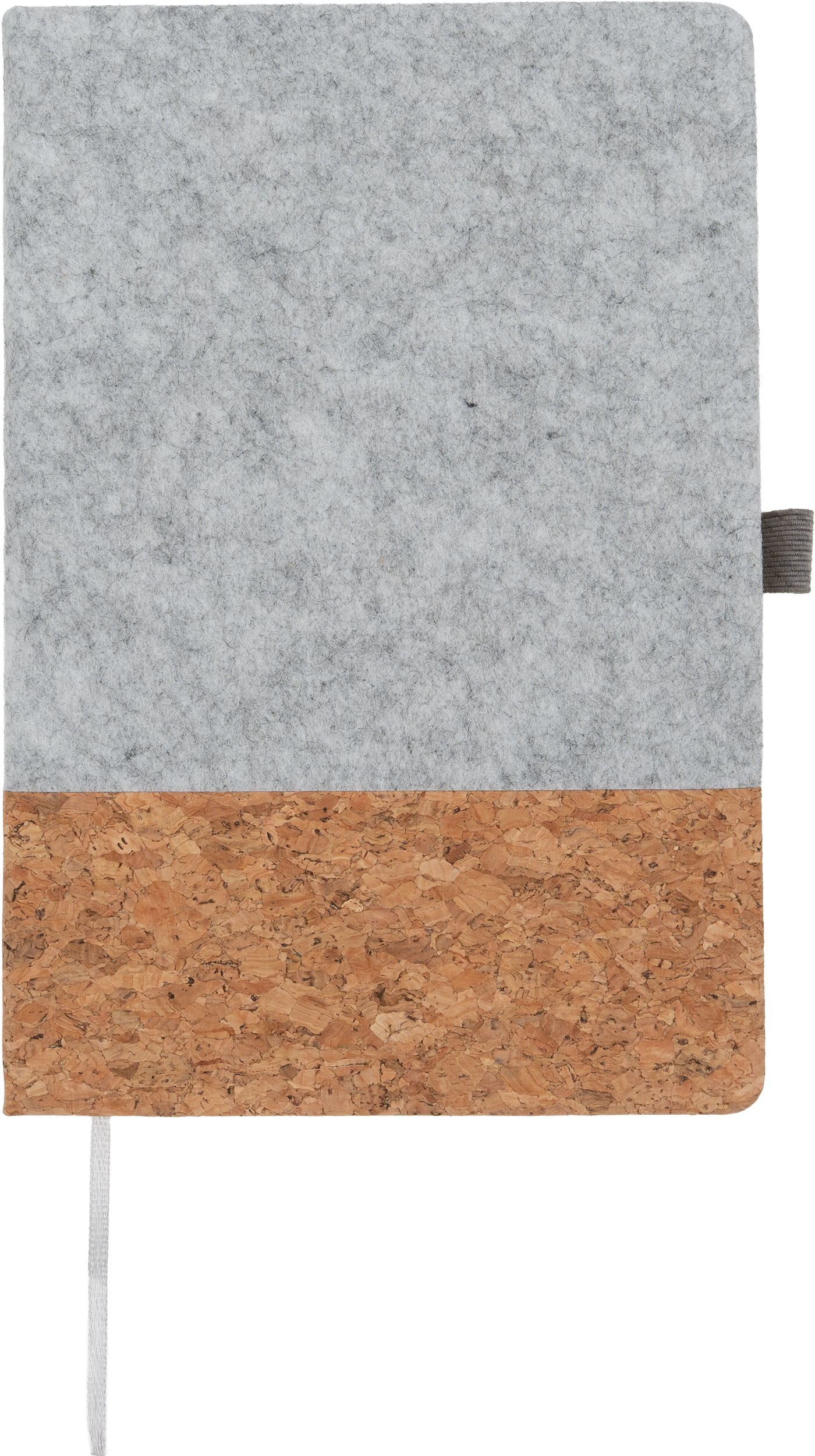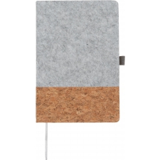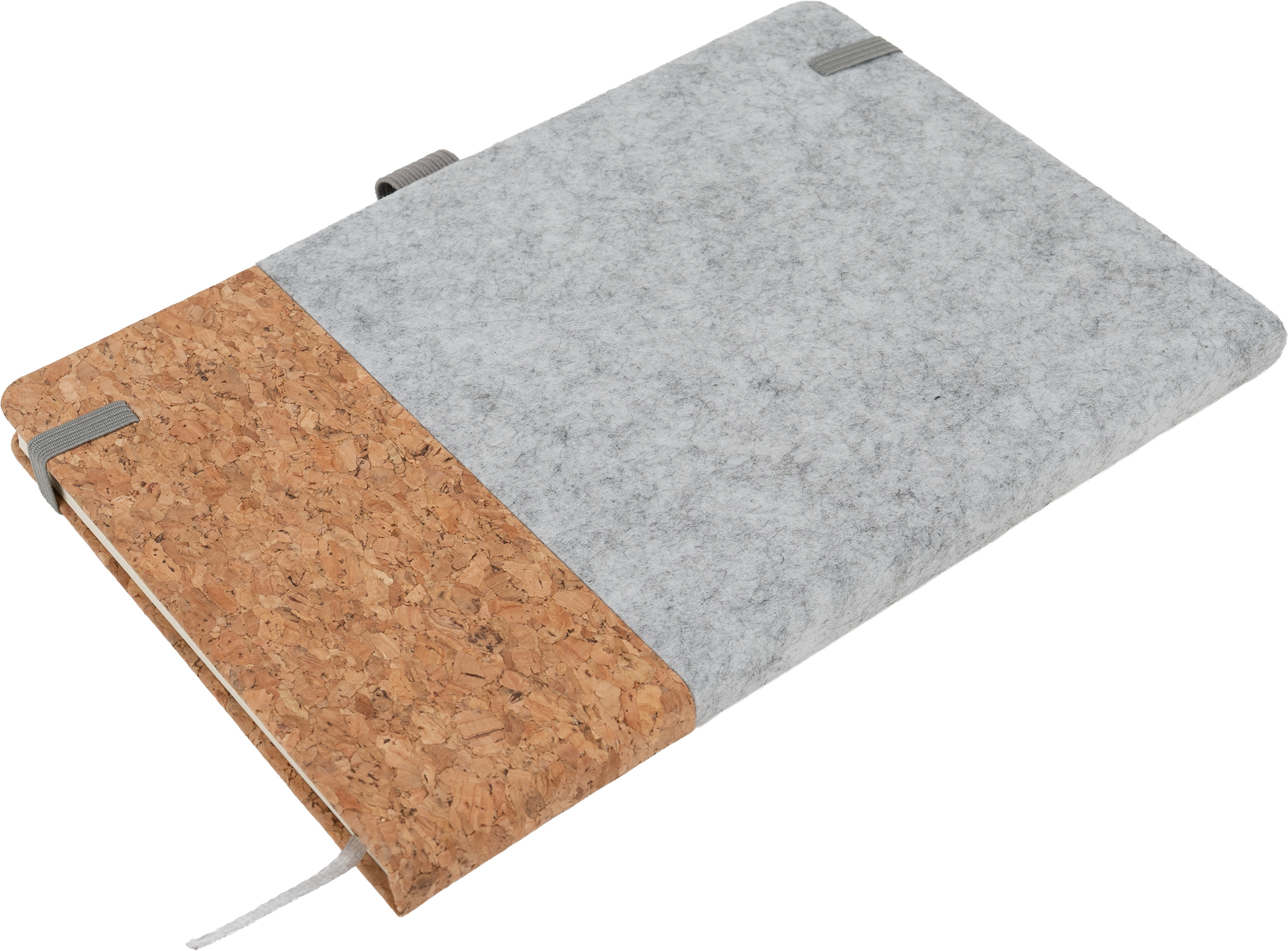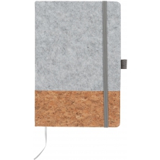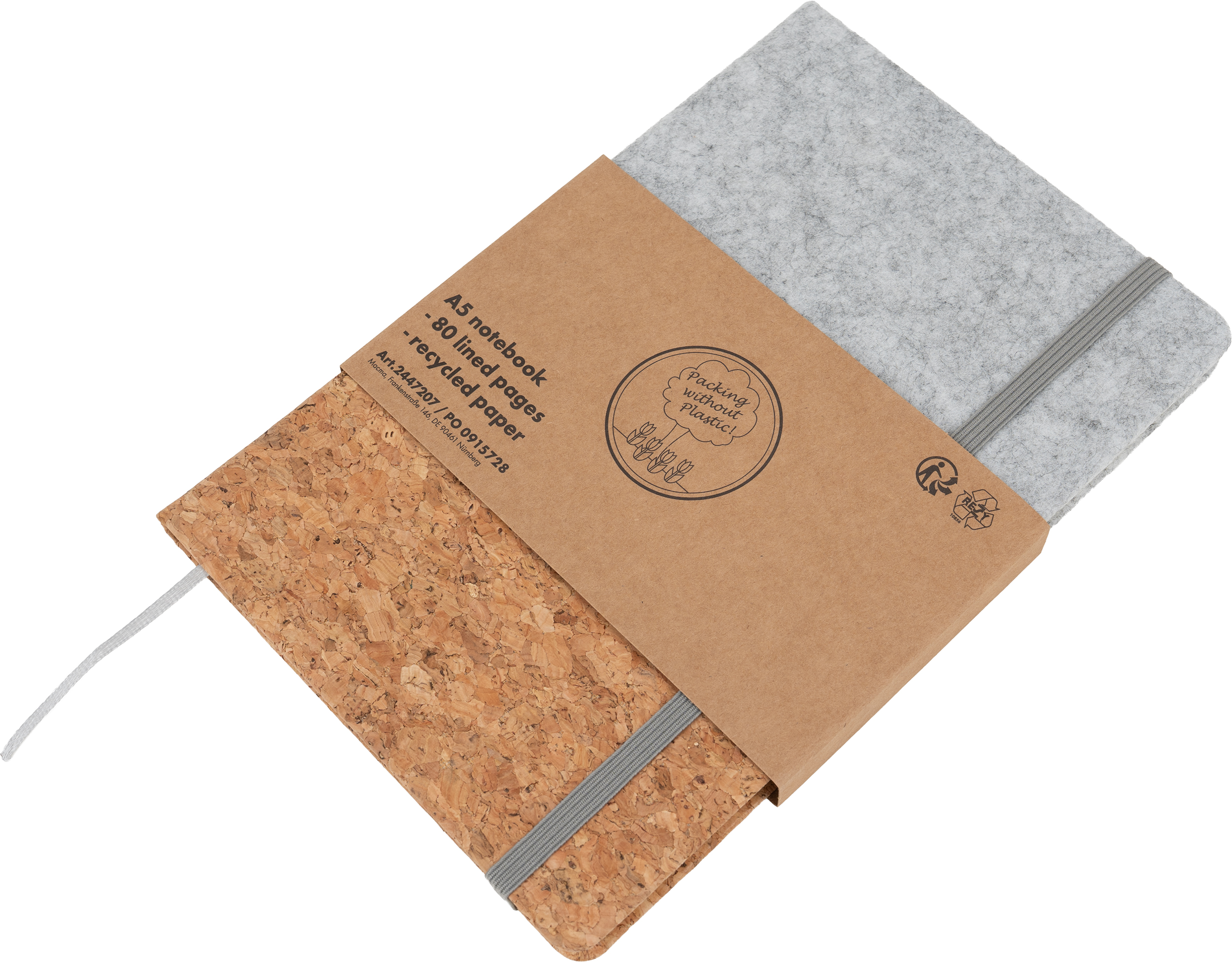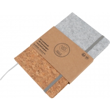 Notes A5 w oprawie z filcu i korka pochodzących z recyklingu, z gumką do zamykania i pętelką na długopis. Notes posiada 80 kartek w linie.