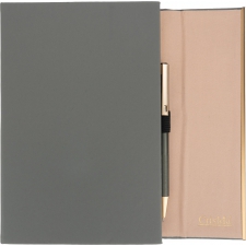 Wykorzystanie materiałów z recyklingu to odpowiedzialny wybór, który wspiera dbałość o naszą planetę. Skórzana okładka dodaje elegancji, a jednocześnie jest trwała i przyjemna w dotyku, co sprawia, że zestaw staje się praktycznym, a zarazem estetycznym akcesorium, które z powodzeniem można zabrać ze sobą na spotkania czy konferencje.Zestaw uzupełnia dopasowany kolorystycznie długopis CrisMa, który zapewnia komfortowe pisanie. Jego wyjątkowy design oraz płynność pisma sprawiają, że jest to nie tylko narzędzie do zapisywania, ale także element podkreślający profesjonalizm użytkownika.