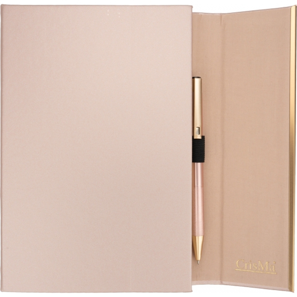 Notatnik A5 ze skóry z recyklingu, w linie z długopisem metalowym CrisMa MAGGIE