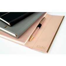 Wykorzystanie materiałów z recyklingu to odpowiedzialny wybór, który wspiera dbałość o naszą planetę. Skórzana okładka dodaje elegancji, a jednocześnie jest trwała i przyjemna w dotyku, co sprawia, że zestaw staje się praktycznym, a zarazem estetycznym akcesorium, które z powodzeniem można zabrać ze sobą na spotkania czy konferencje.Zestaw uzupełnia dopasowany kolorystycznie długopis CrisMa, który zapewnia komfortowe pisanie. Jego wyjątkowy design oraz płynność pisma sprawiają, że jest to nie tylko narzędzie do zapisywania, ale także element podkreślający profesjonalizm użytkownika.