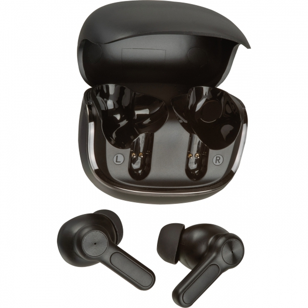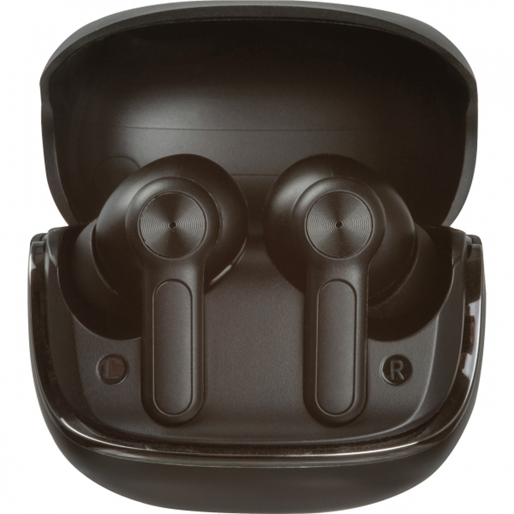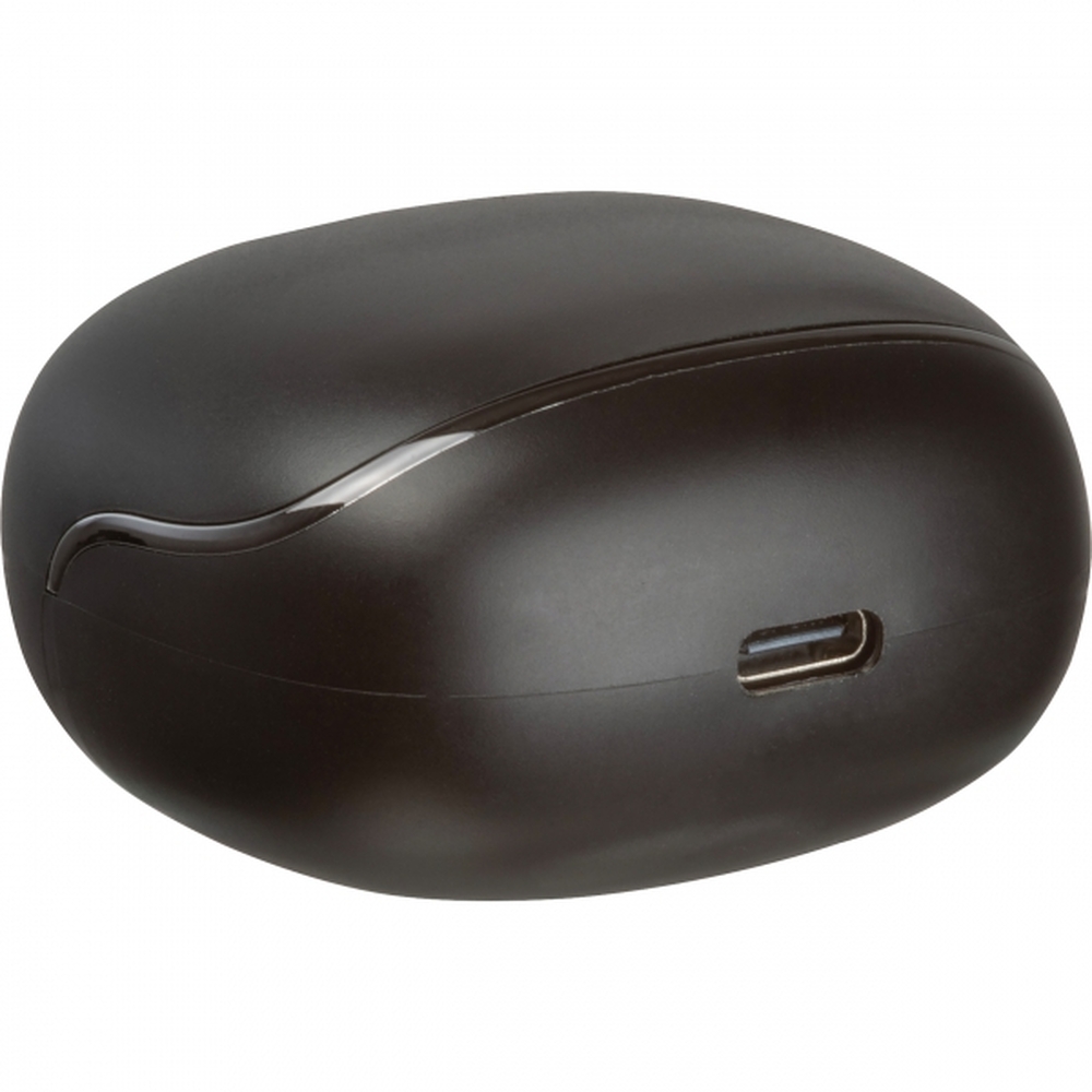 Słuchawki bezprzewodowe (40 mAh) z etui ładującym (500 mAh). Czas grania naładowanych słuchawek wynosi 6h.