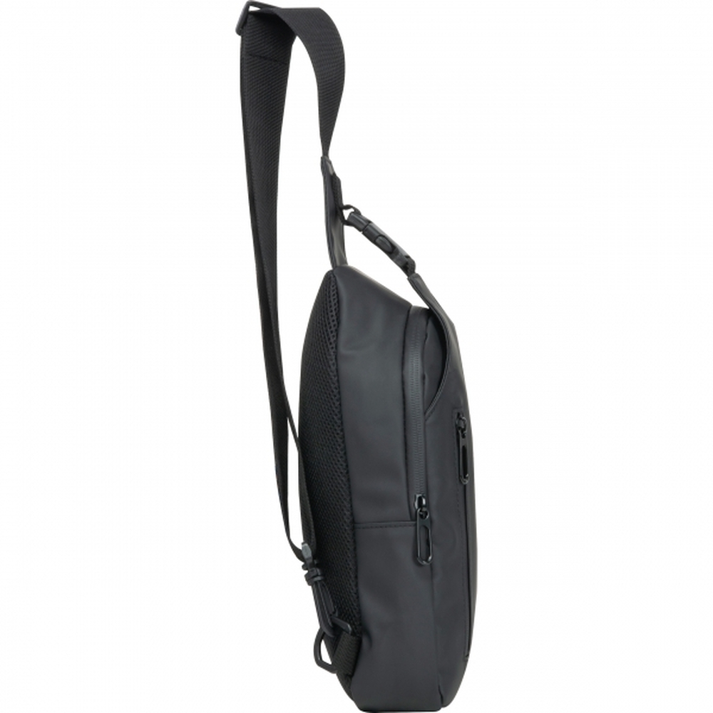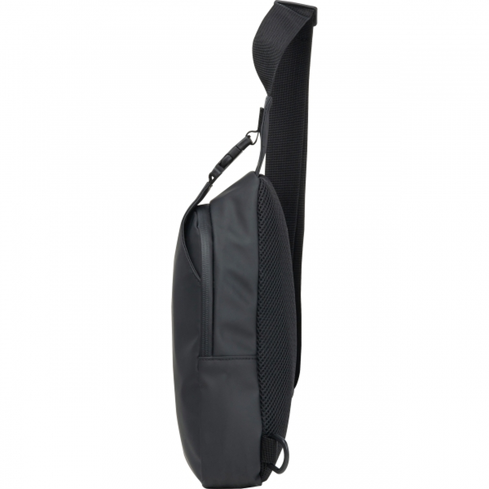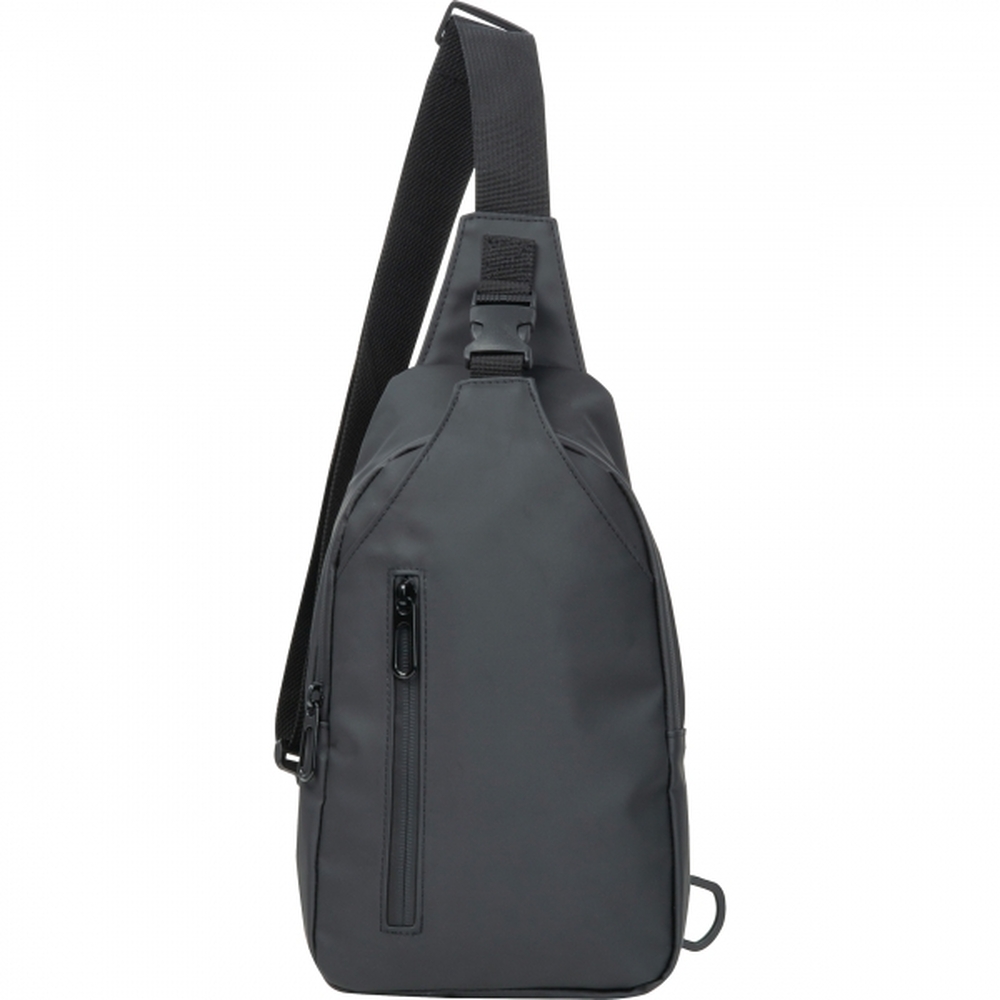 Praktyczna saszetka wykonana z wytrzymałego poliuretanu, zamykana na zamek. Posiada pasek z regulacją długości i klamrą.