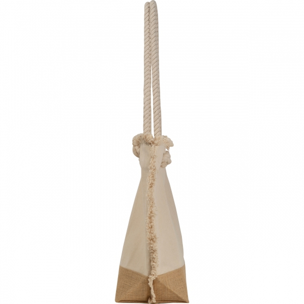 Bawełniana torba plażowa z certyfikatem Oeko-Tex® , z jutowym dnem oraz uchwytami z grubego sznura.