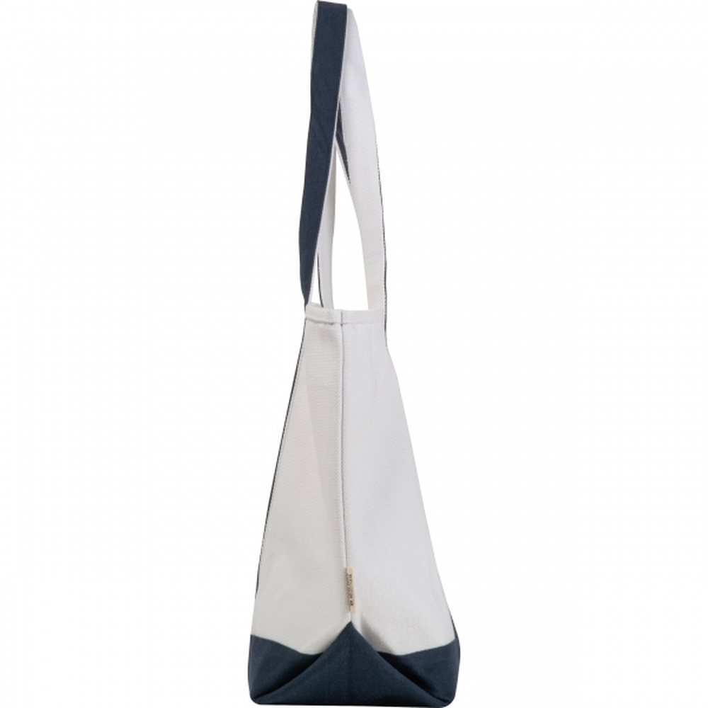 Solidna torba o gramaturze 730 g/m2, wykonana z bawełny pochodzącej z recyklingu z długimi kolorowymi uchwytami.