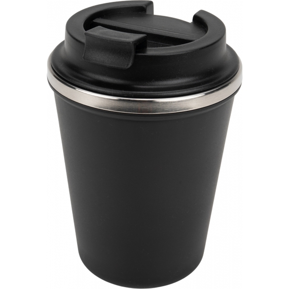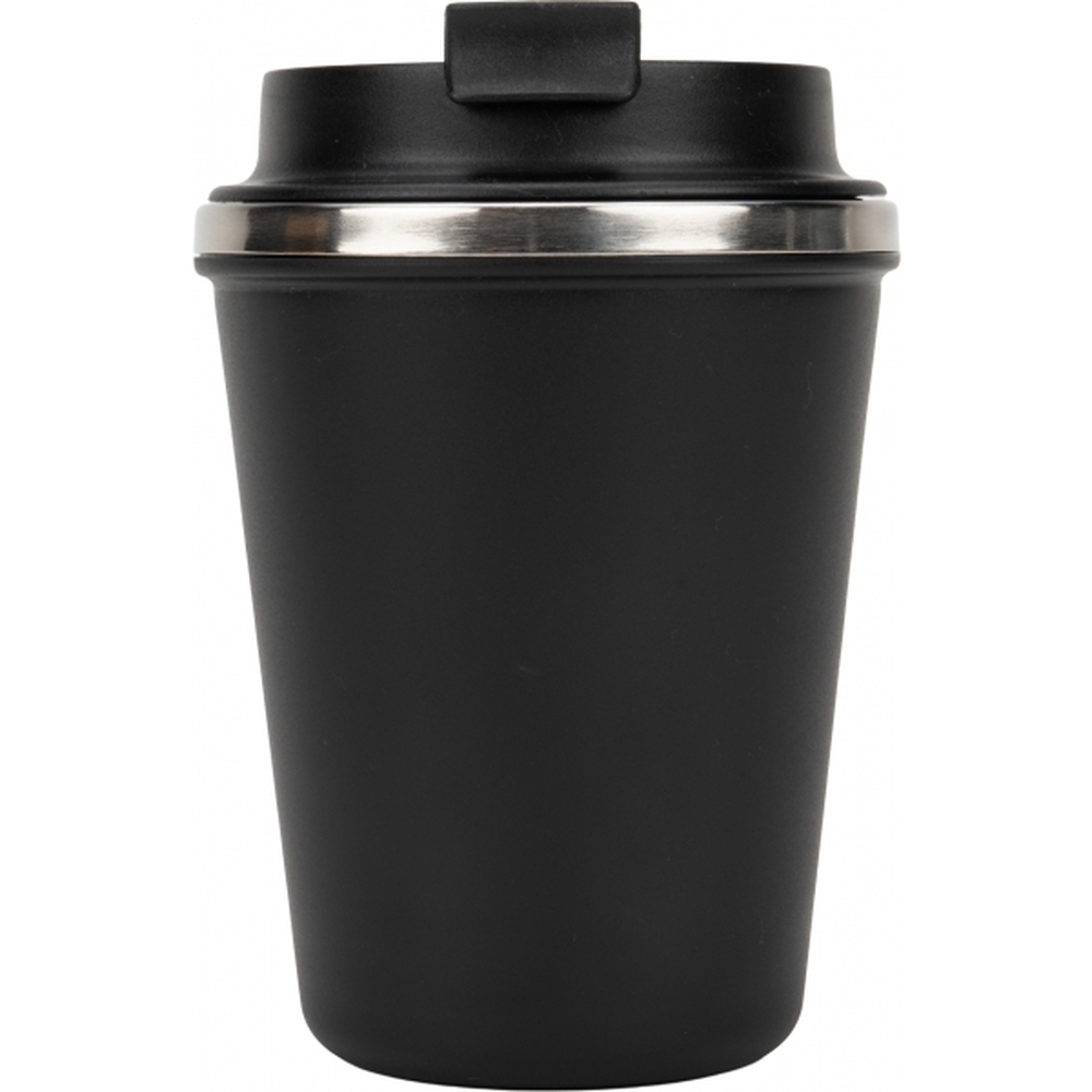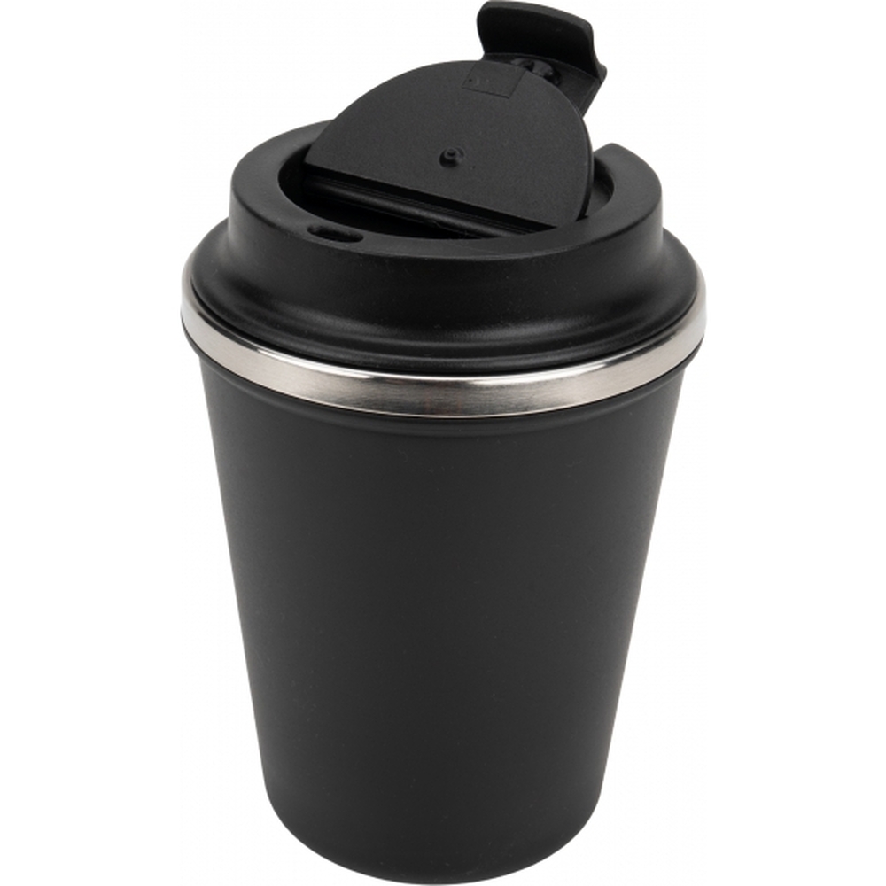 Kubek z podwójnymi ściankami ze stali nierdzewnej, z zewnątrz z plastikową powłoką z materiału pochodzącego z recyklingu, o pojemności 350 ml, z zamykanym ustnikiem. Kubek utrzymuje ciepło napoju przez 4 godziny.