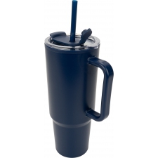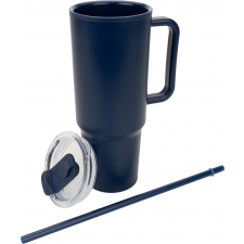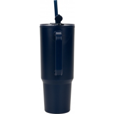 Kubek XXL, o pojemności 1200 ml, z podwójnymi ściankami, uchwytem do przenoszenia i słomką do picia.
