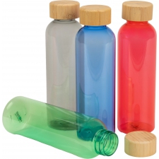 Butelka do picia wykonana z PET, z bambusowym wieczkiem, o pojemności 500 ml.
