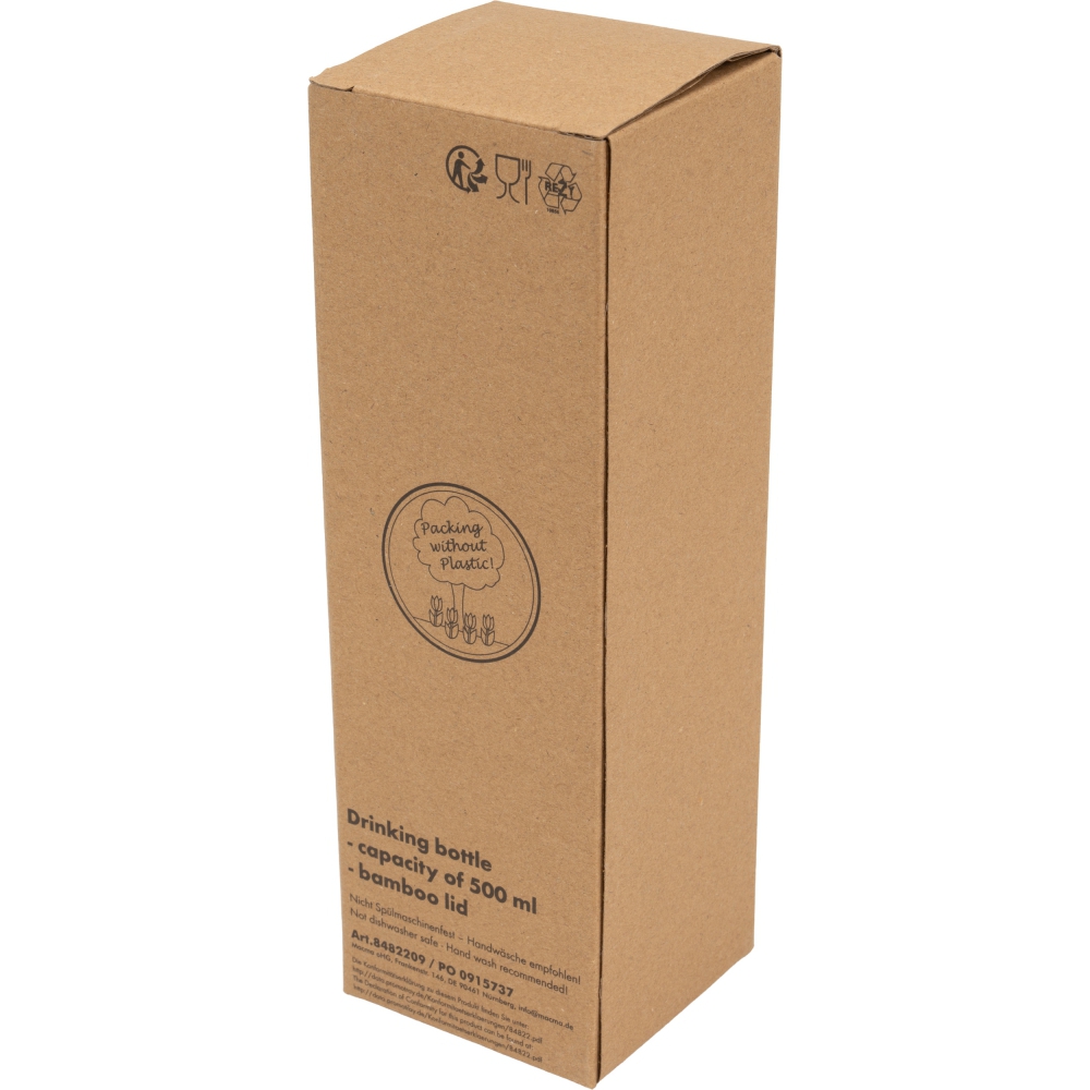 Butelka do picia wykonana z PET, z bambusowym wieczkiem, o pojemności 500 ml.