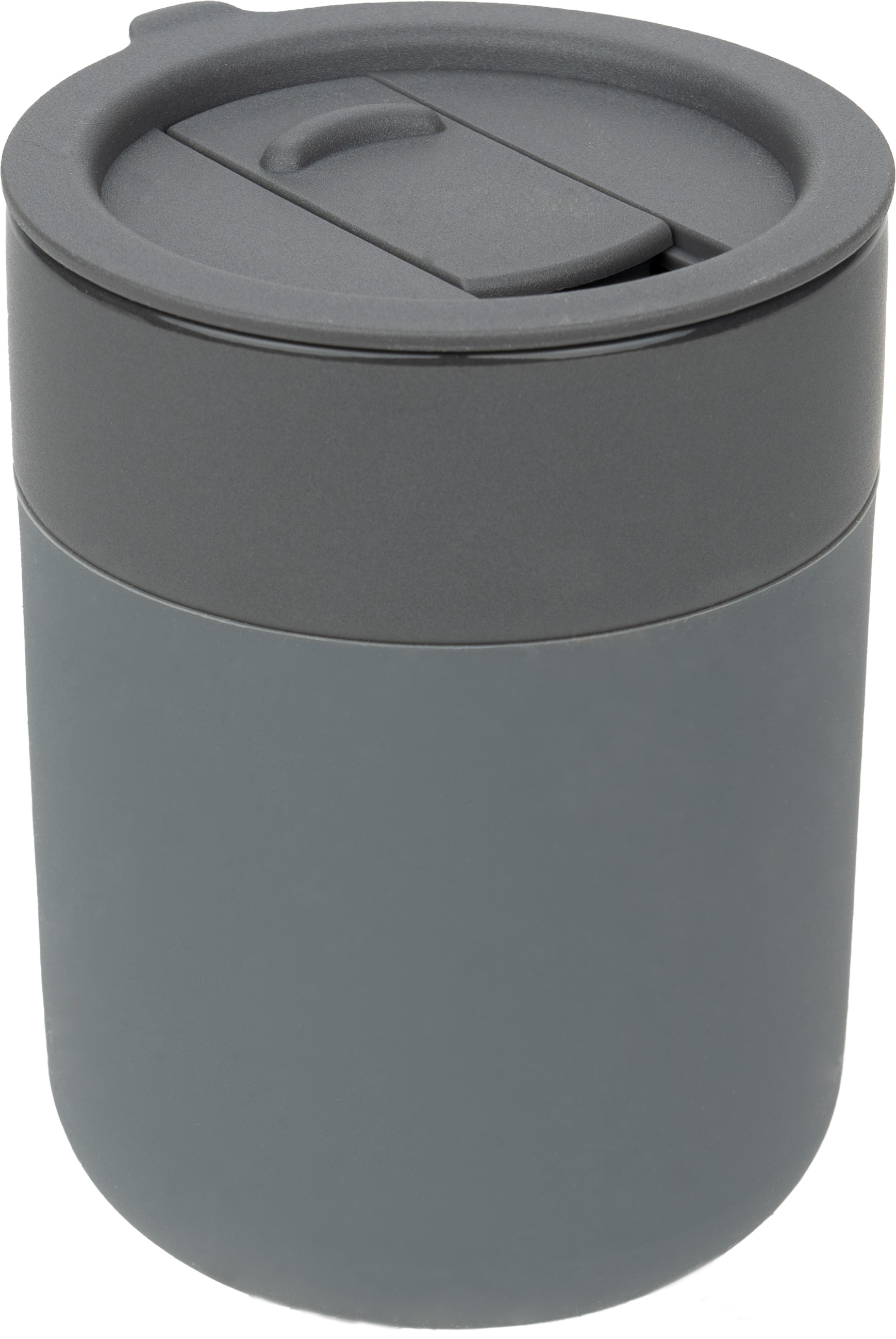 Kubek ceramiczny, o pojemności 340 ml, z silikonowym rękawem i zamykanym ustnikiem.