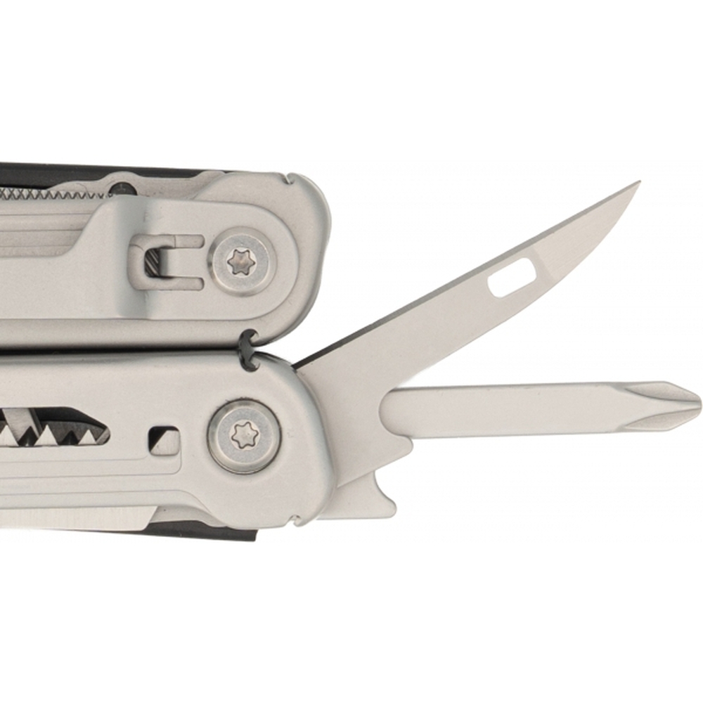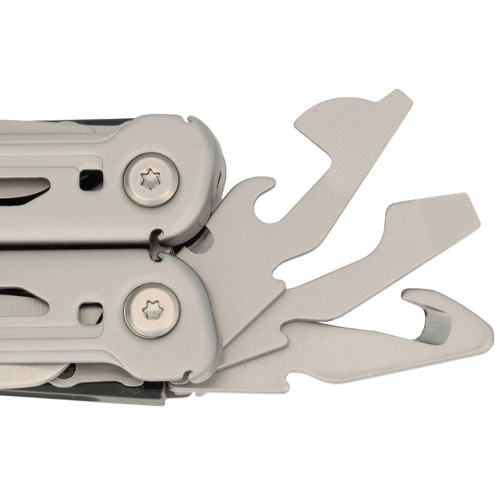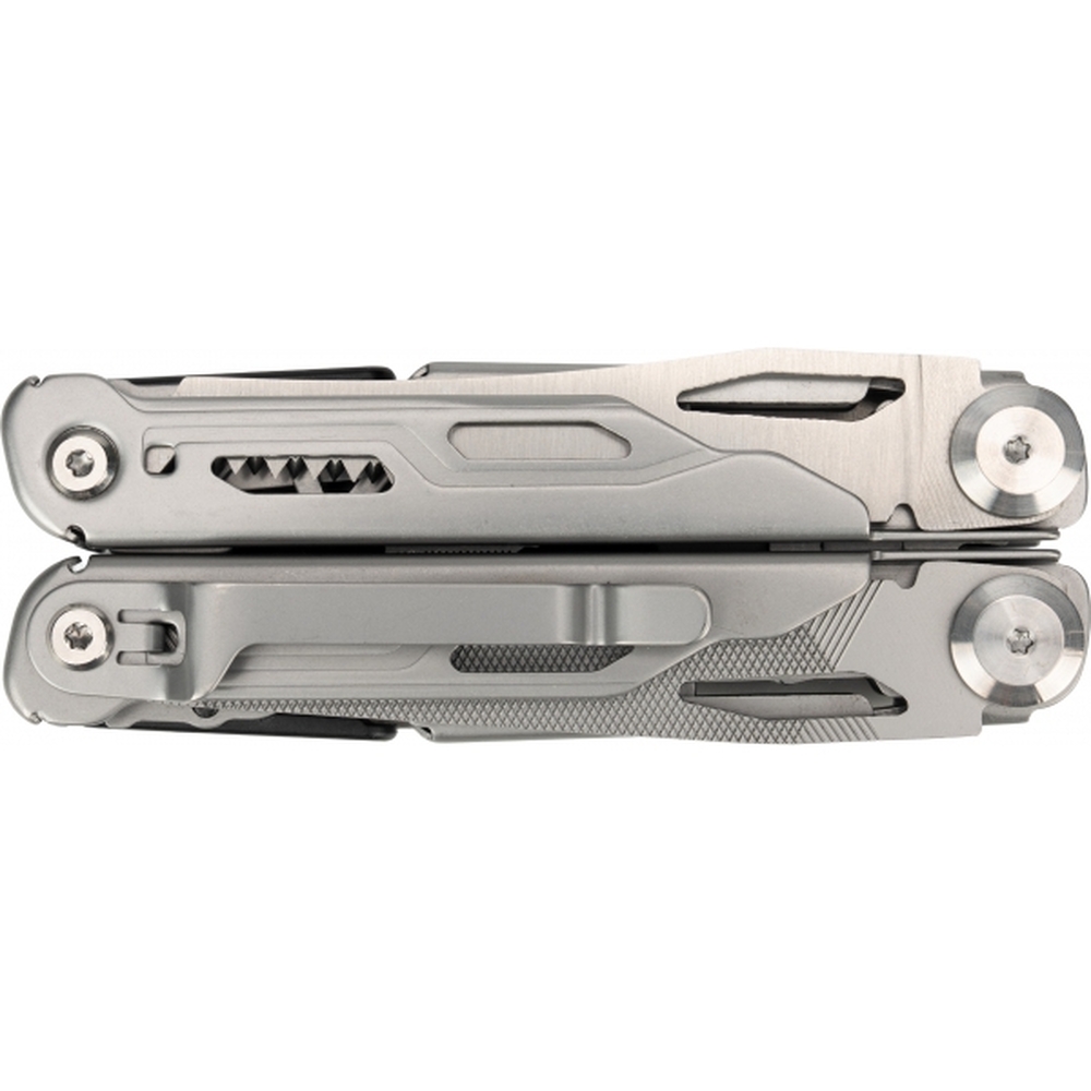 Multinarzędzie 17 w 1, ze stali nierdzewnej, wyposażone między innymi w: szczypce, nóż, piłke, nożyczki, śrubokręt itp. Posiada praktyczny klips, dzięki któremu można je przymocować do paska.