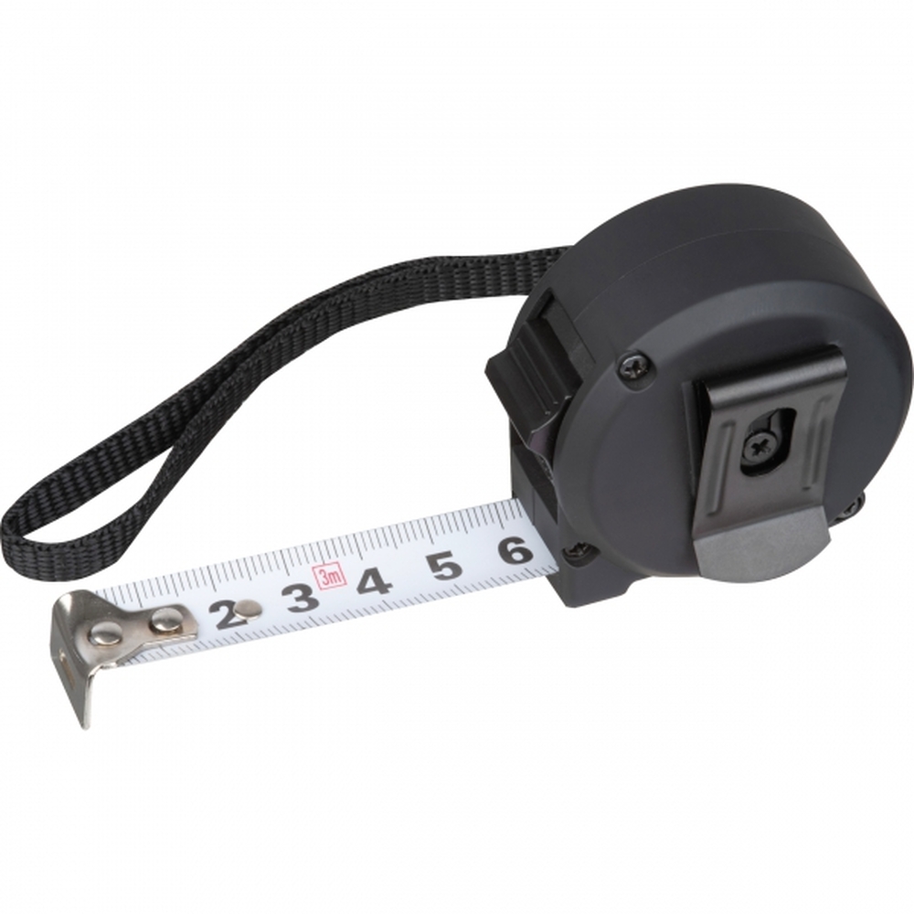 Taśma miernicza o długości 3m, z nylonowym sznurkiem i klipsem dzięki, któremu można zamocować ją na pasie narzędzi lub przypiąć do spodni.