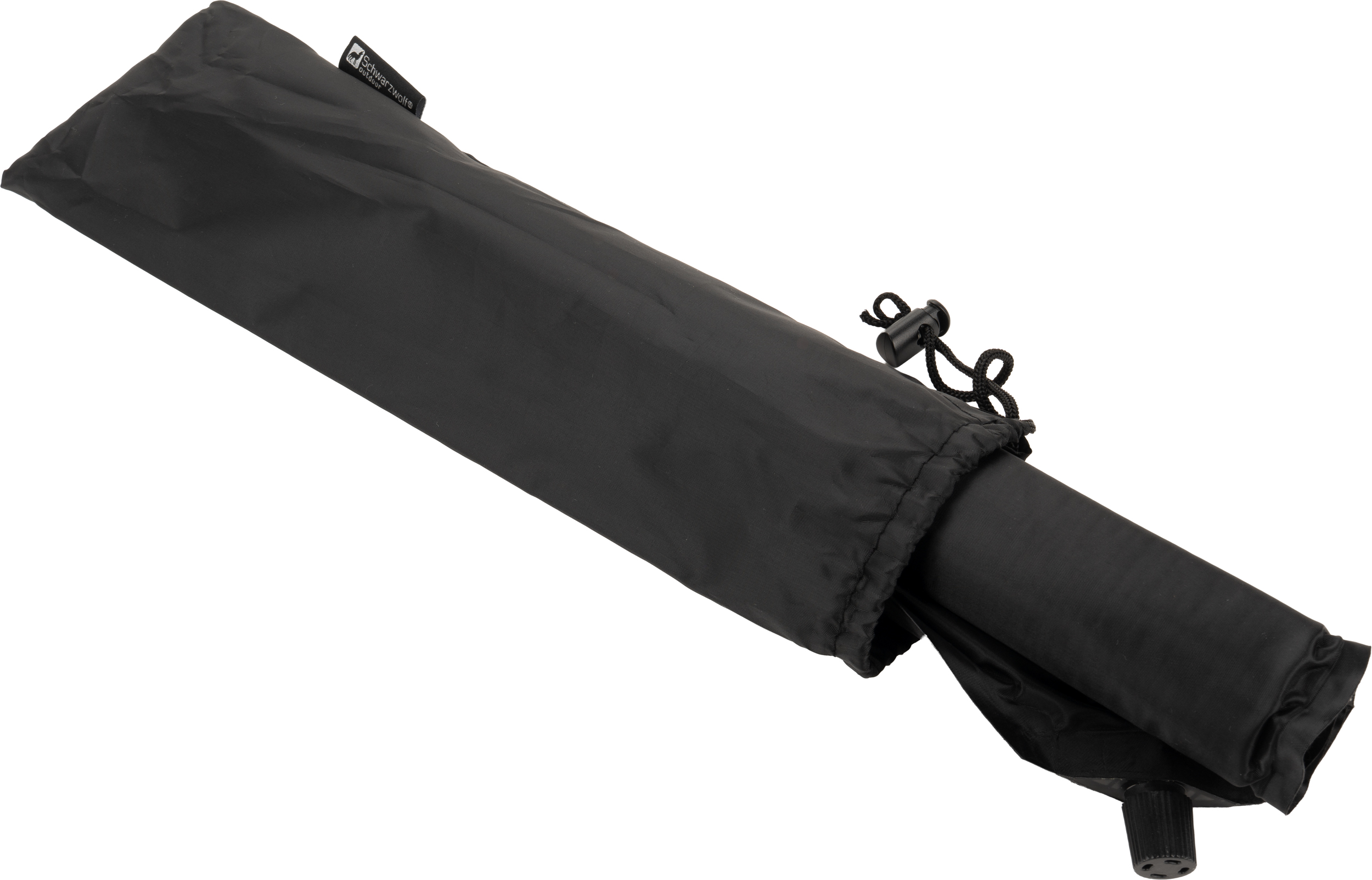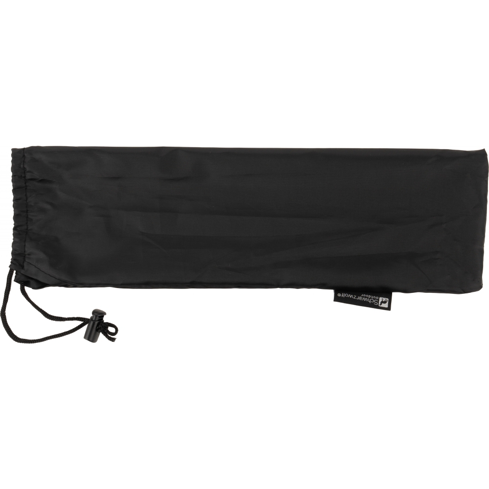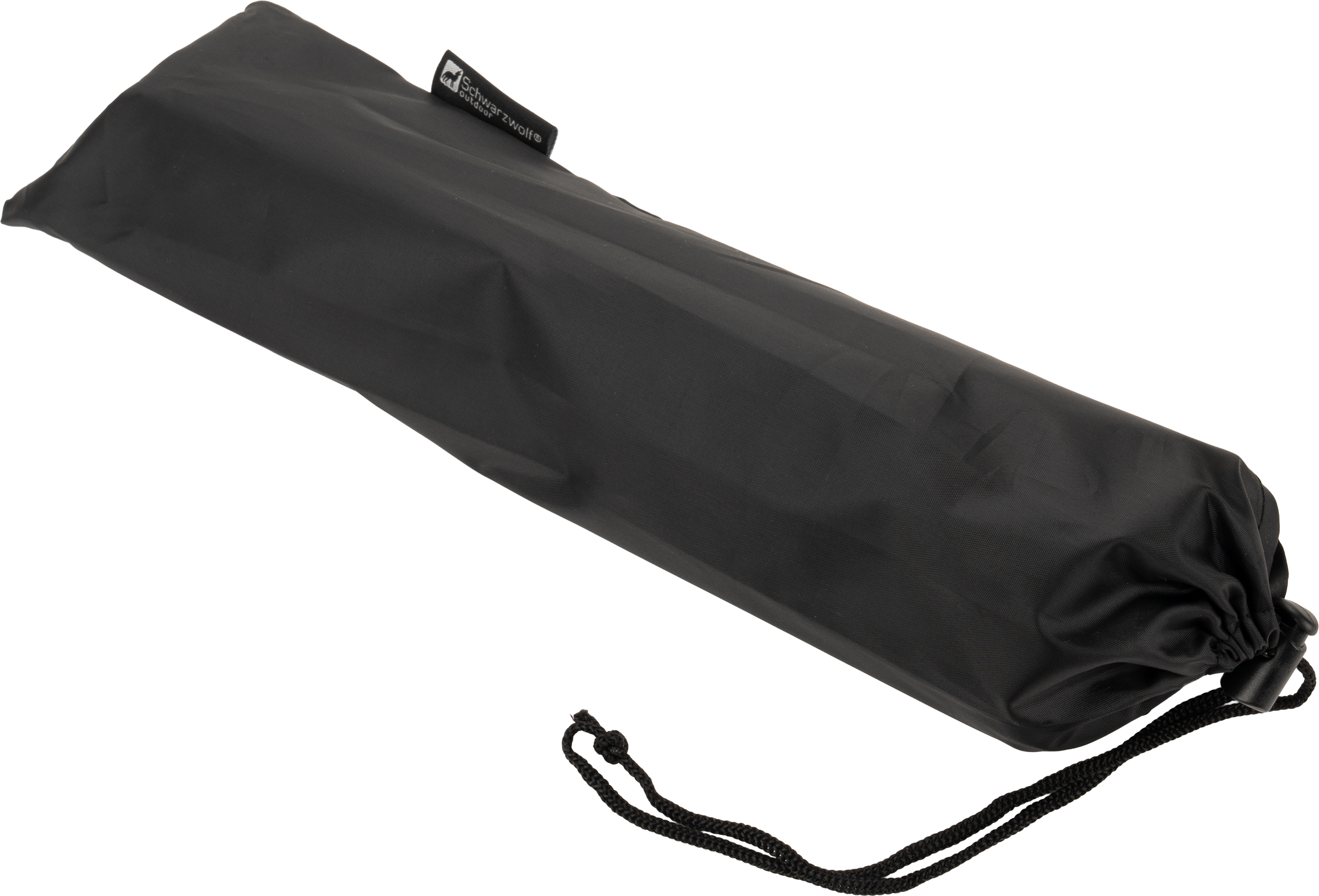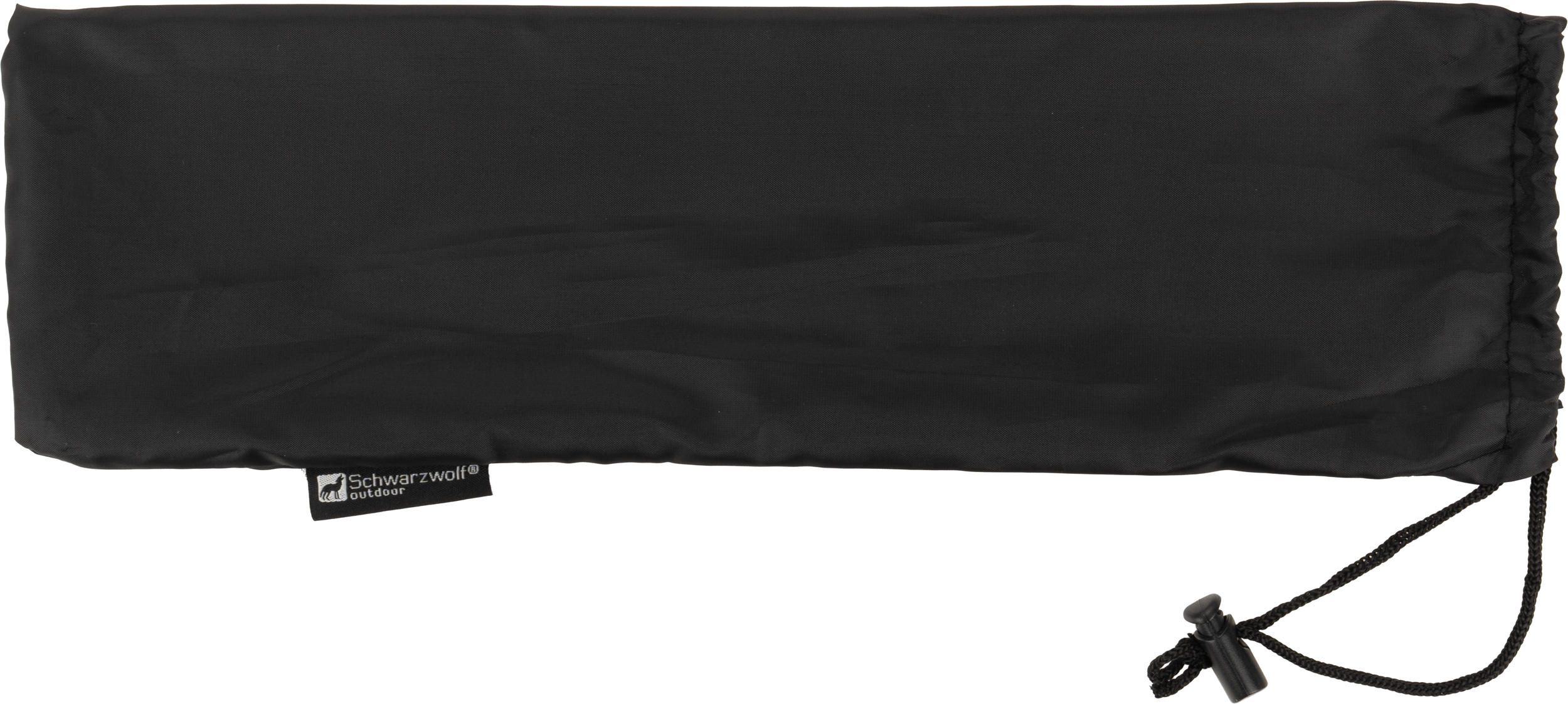 Poduszka podróżna dmuchana Schwarzwolf w czarnym kolorze. Zapakowana w woreczek ściągany sznurkiem - 34 x 8 x 8 cm.