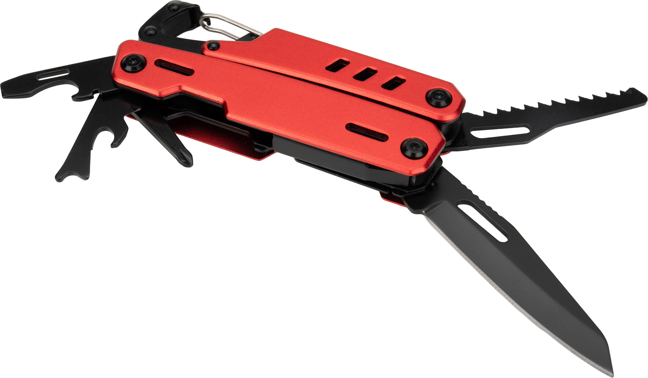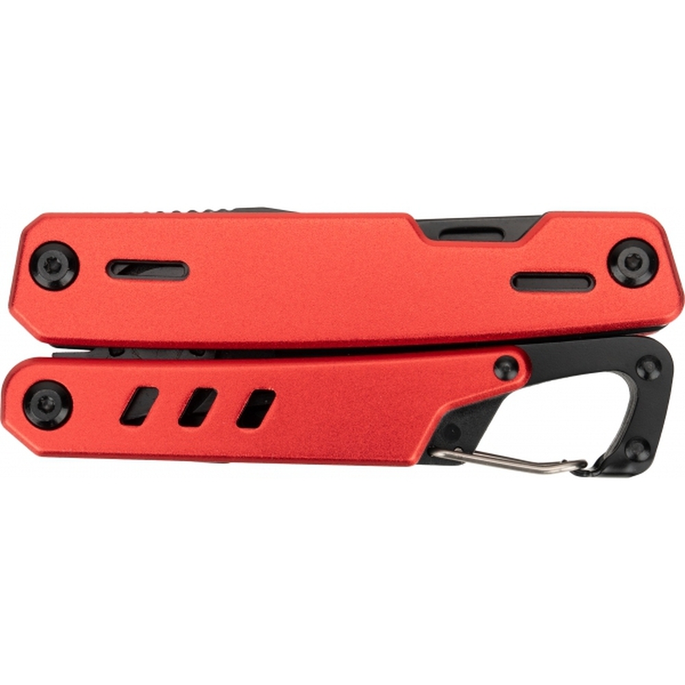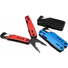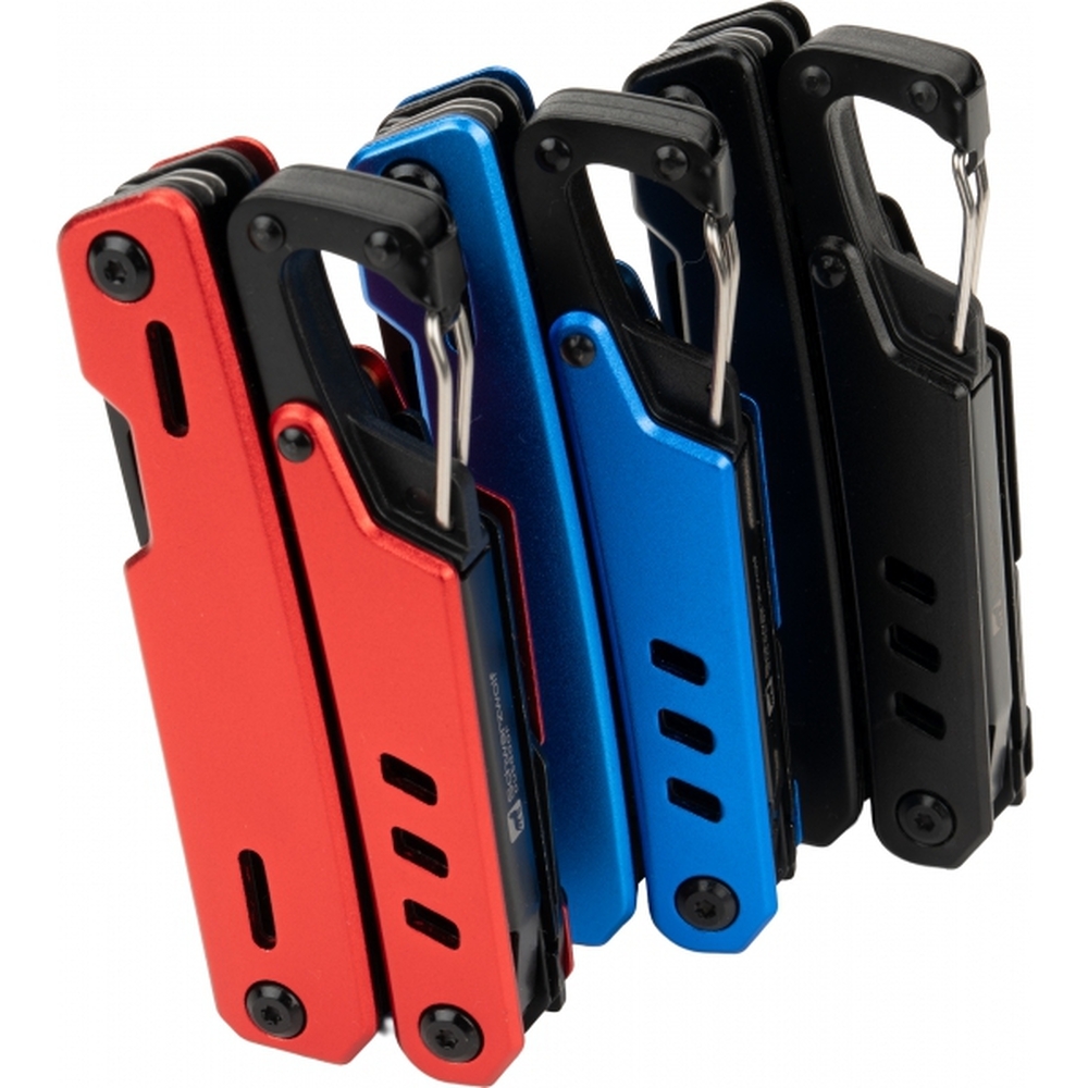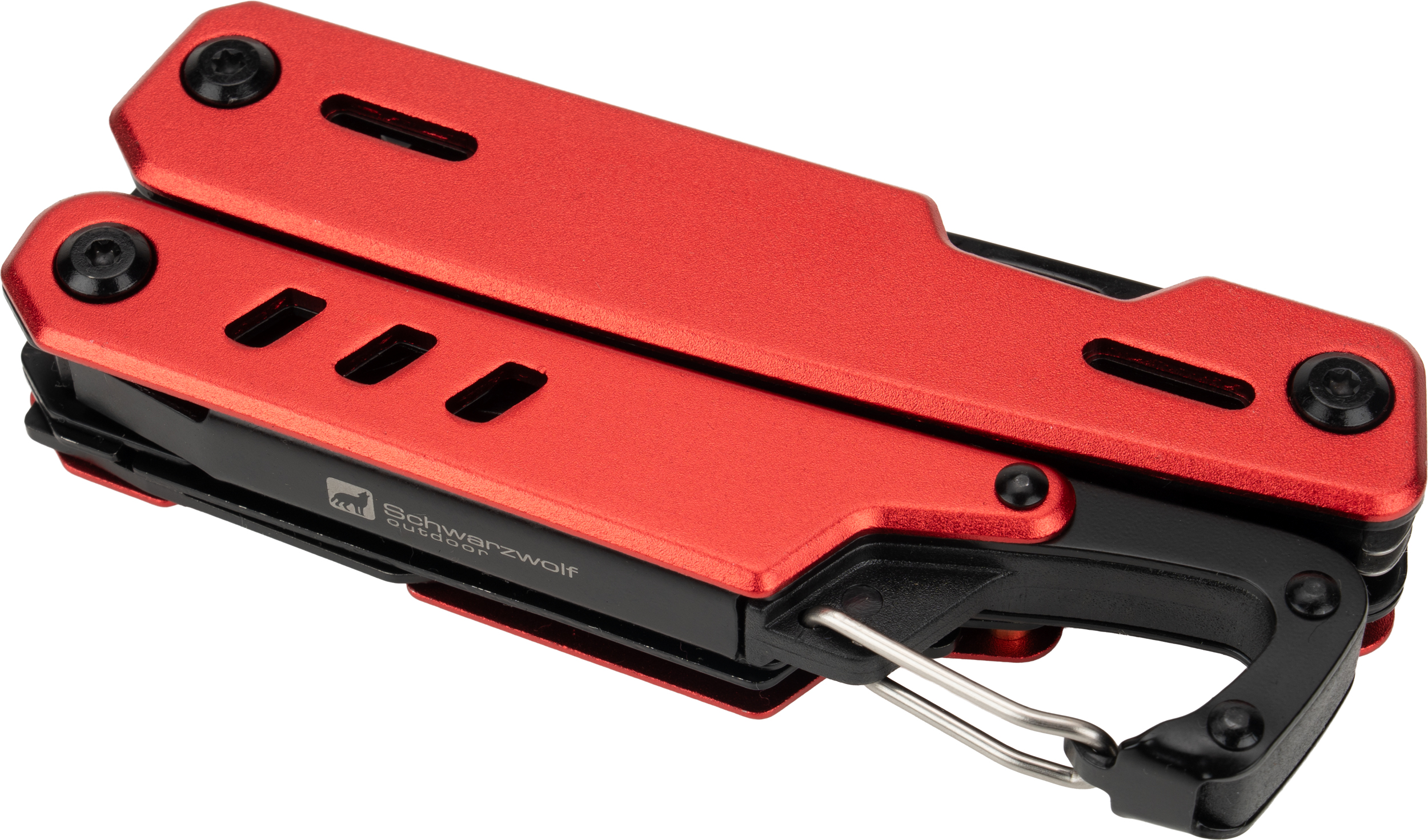 Multi-narzędzie Schwarzwolf zawiera 11 rodzajów narzędzi - nóż, otwieracz do piwa, otwieracz do puszek, szczypce, łuparka, piła, śrubokręt, śrubokręt krzyżakowy, pilnik, ściągacz izolacji. Zestaw narzędzi posiada karabińczyk i jest zapakowany w etui z neoprenu.