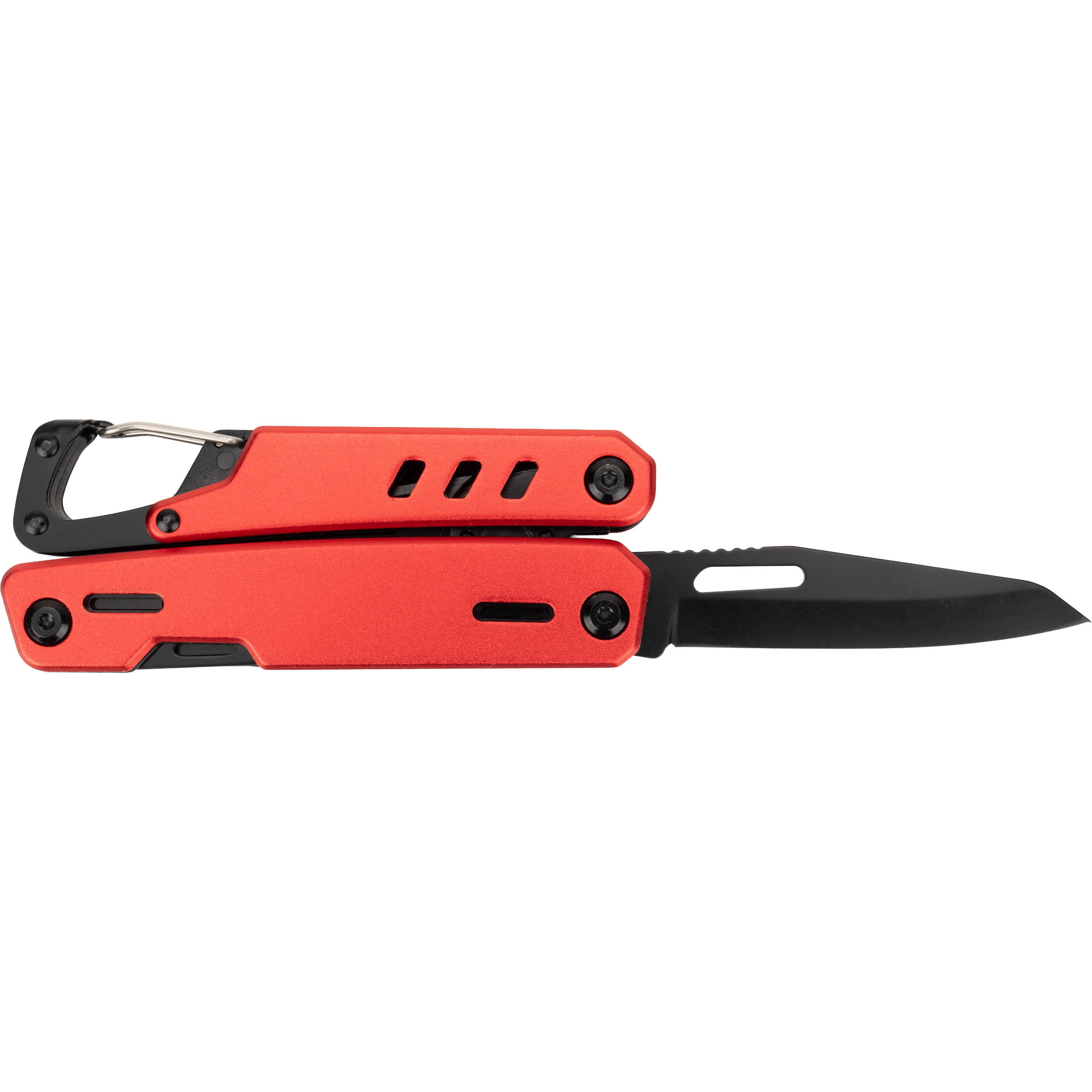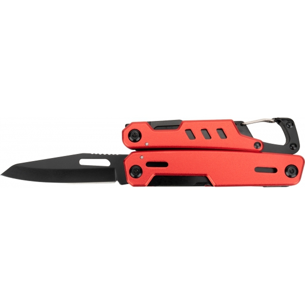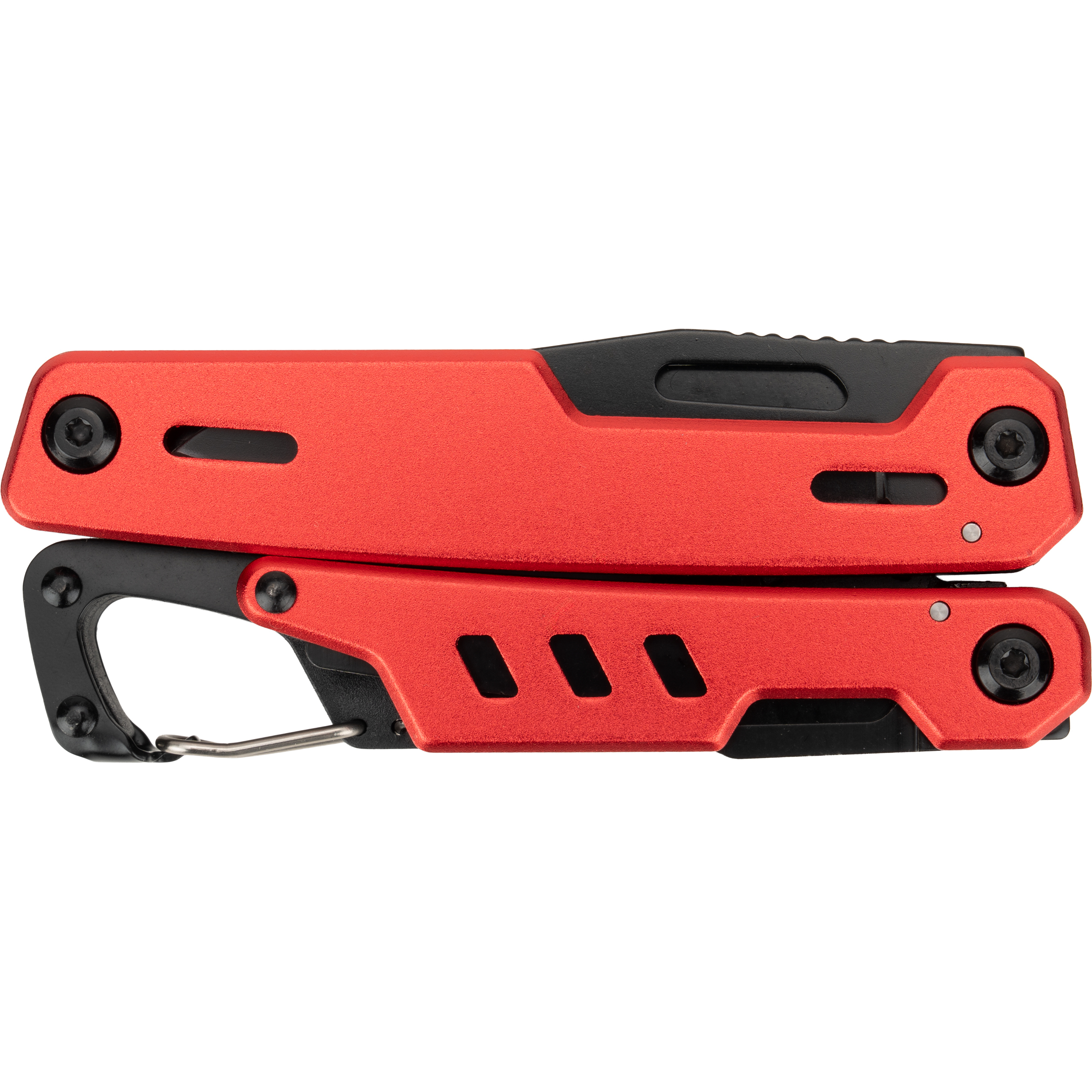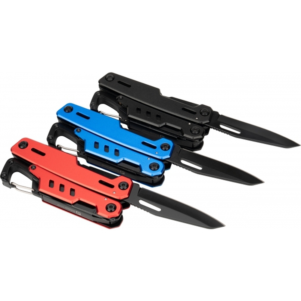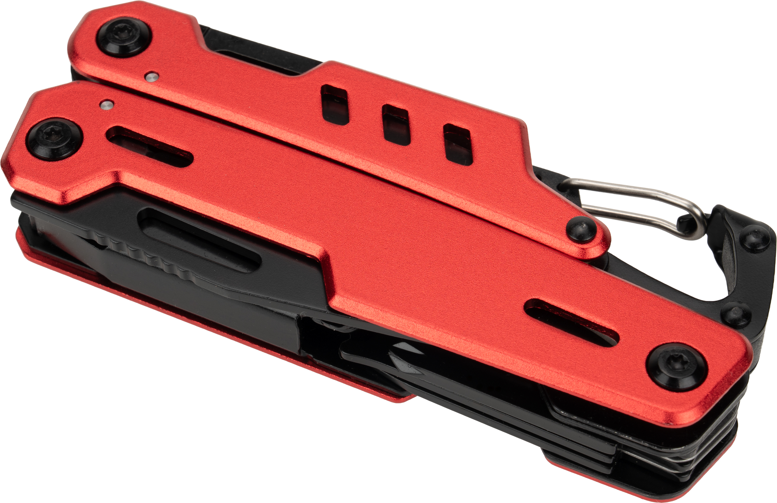 Multi-narzędzie Schwarzwolf zawiera 11 rodzajów narzędzi - nóż, otwieracz do piwa, otwieracz do puszek, szczypce, łuparka, piła, śrubokręt, śrubokręt krzyżakowy, pilnik, ściągacz izolacji. Zestaw narzędzi posiada karabińczyk i jest zapakowany w etui z neoprenu.