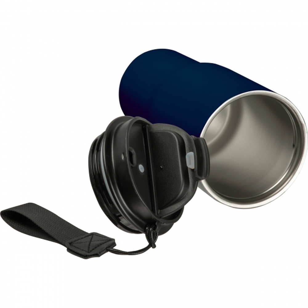 Kubek termiczny, wykonany ze stali nierdzewnej z recyklingu, z podwójnymi ściankami, o pojemności 550 ml. Kubek posiada praktyczny pasek do przenoszenia.