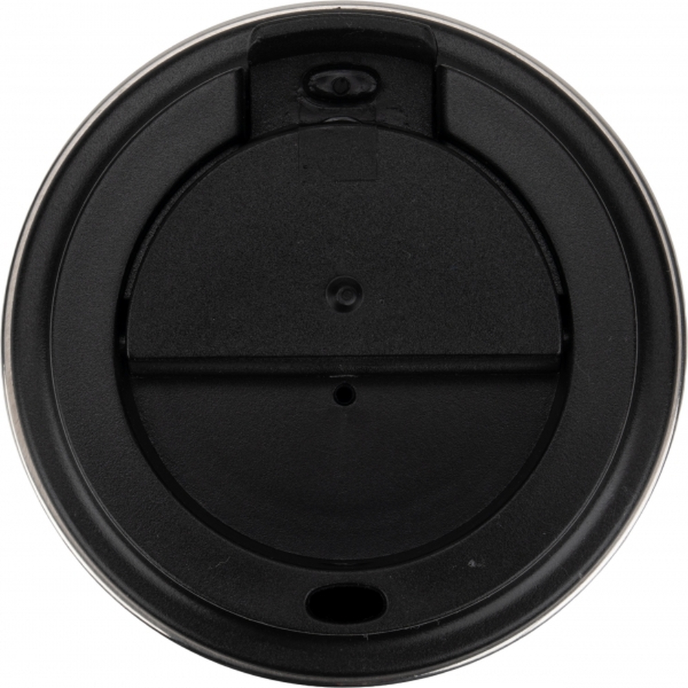 Kubek z podwójnymi ściankami ze stali nierdzewnej, z zewnątrz z plastikową powłoką z materiału pochodzącego z recyklingu, o pojemności 350 ml, z zamykanym ustnikiem. Kubek utrzymuje ciepło napoju przez 4 godziny.