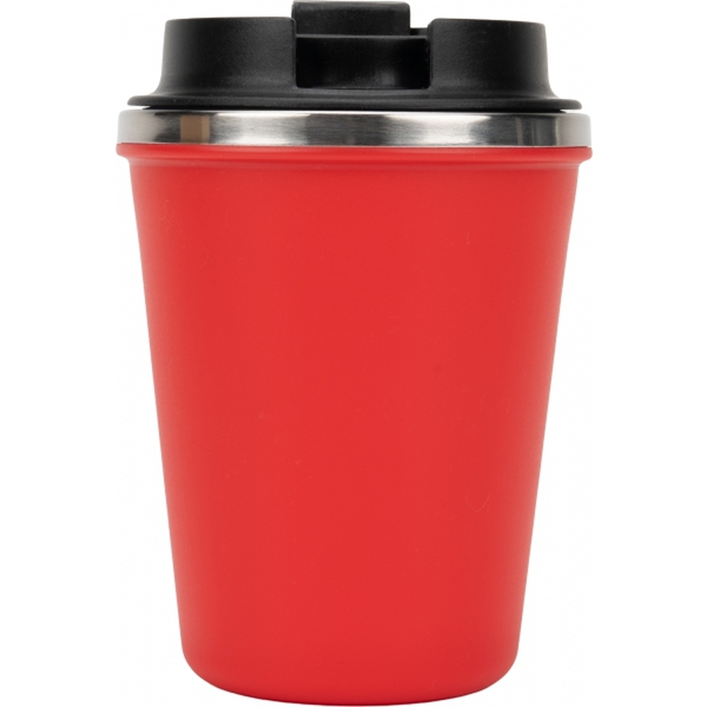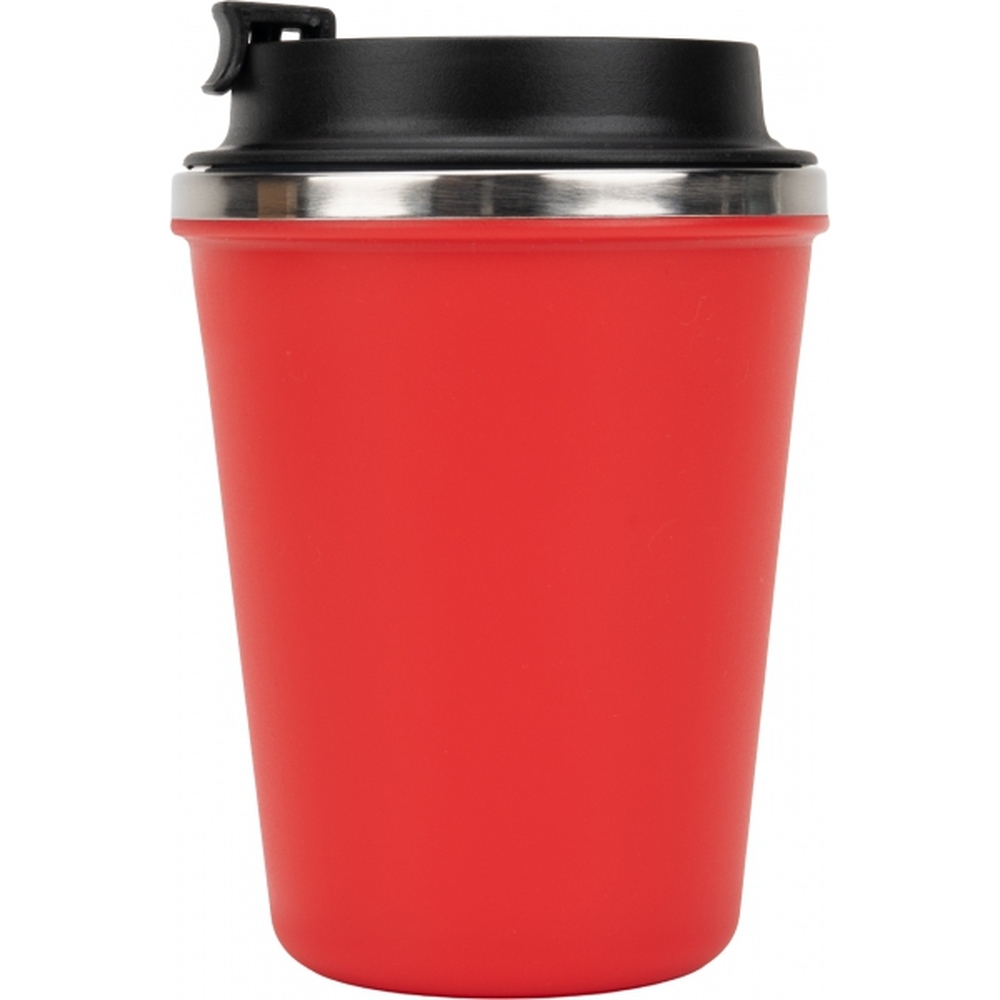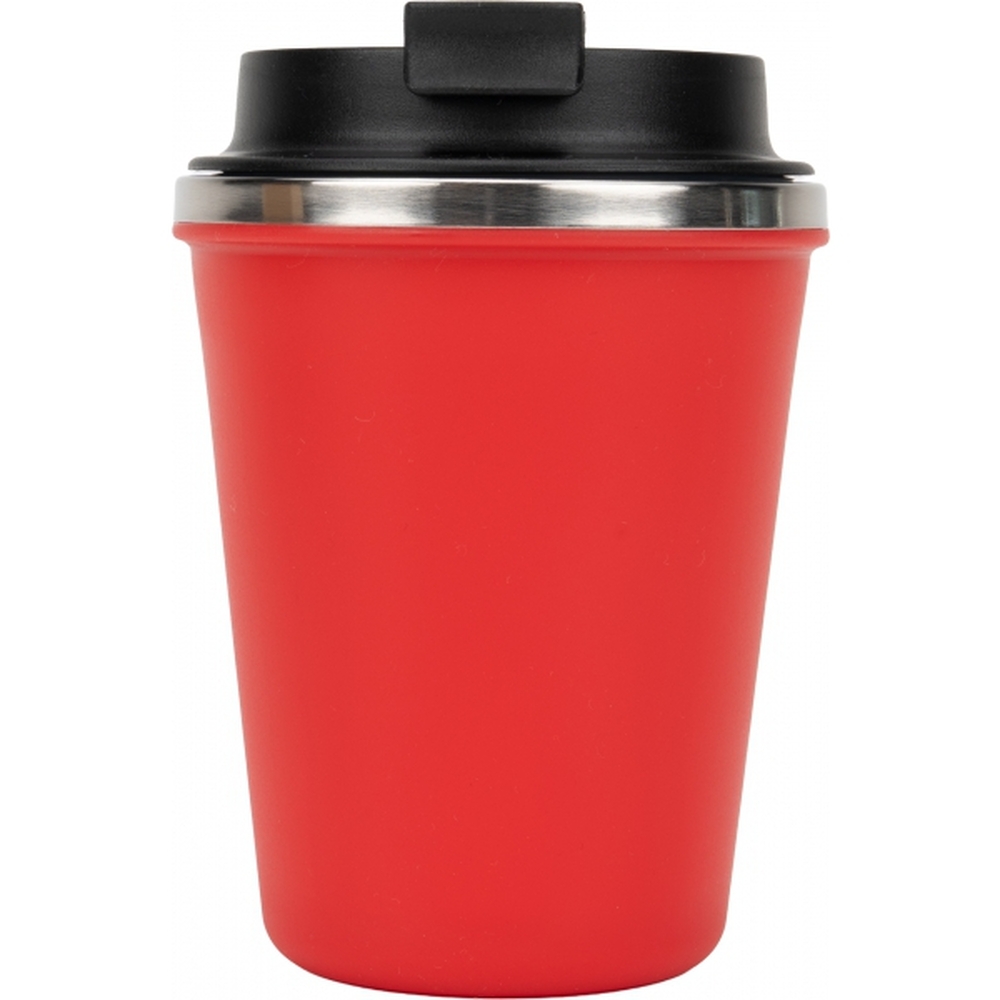 Kubek z podwójnymi ściankami ze stali nierdzewnej, z zewnątrz z plastikową powłoką z materiału pochodzącego z recyklingu, o pojemności 350 ml, z zamykanym ustnikiem. Kubek utrzymuje ciepło napoju przez 4 godziny.