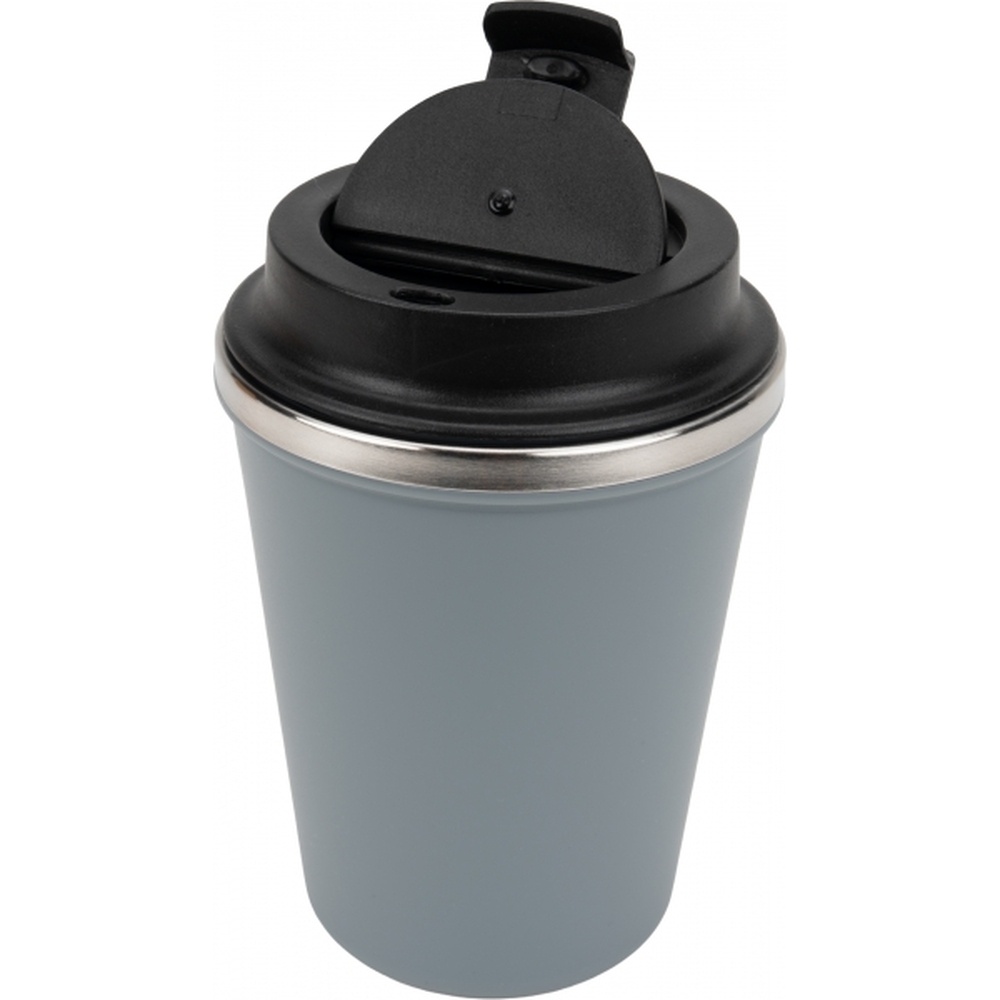 Kubek z podwójnymi ściankami ze stali nierdzewnej, z zewnątrz z plastikową powłoką z materiału pochodzącego z recyklingu, o pojemności 350 ml, z zamykanym ustnikiem. Kubek utrzymuje ciepło napoju przez 4 godziny.