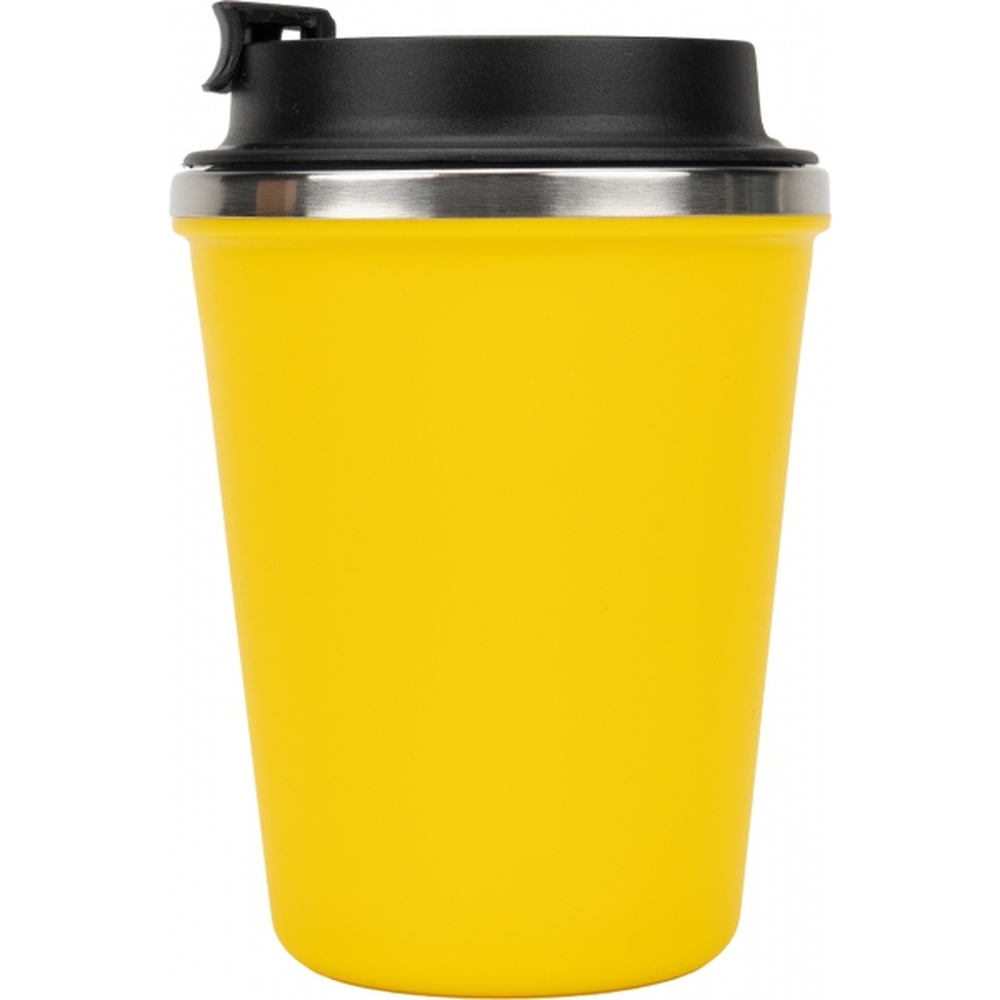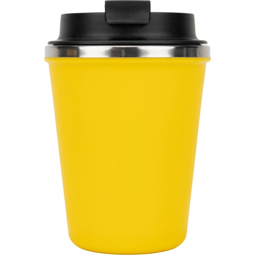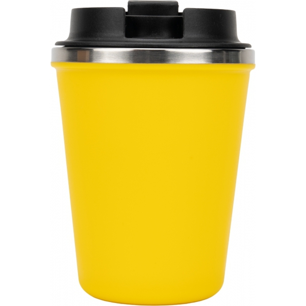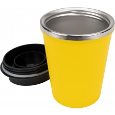 Kubek z podwójnymi ściankami ze stali nierdzewnej, z zewnątrz z plastikową powłoką z materiału pochodzącego z recyklingu, o pojemności 350 ml, z zamykanym ustnikiem. Kubek utrzymuje ciepło napoju przez 4 godziny.