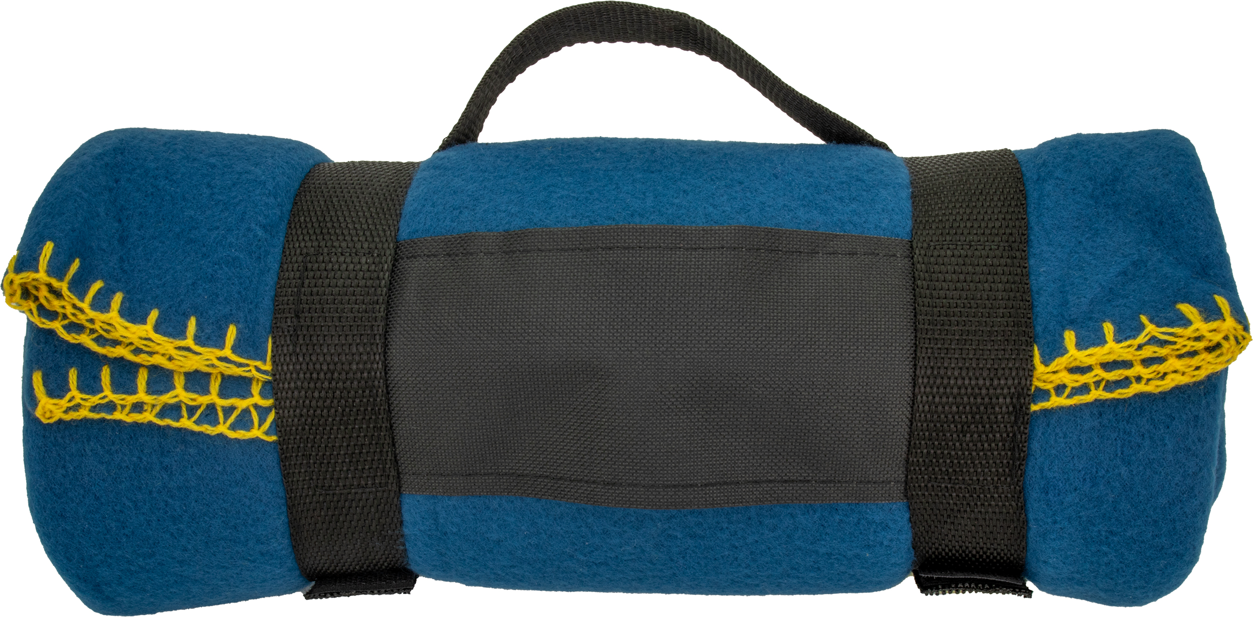 Koc z miękkiego polaru. Posiada praktyczny pasek z uchwytami do noszenia. Gramatura 170 g/m².