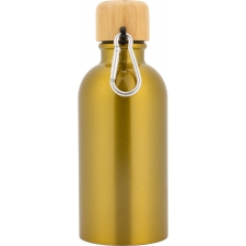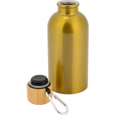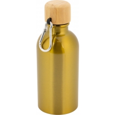 Butelka wykonana ze stali nierdzewnej, o pojemności 400 ml, z bambusową zakrętką do której został przymocowany karabińczyk.