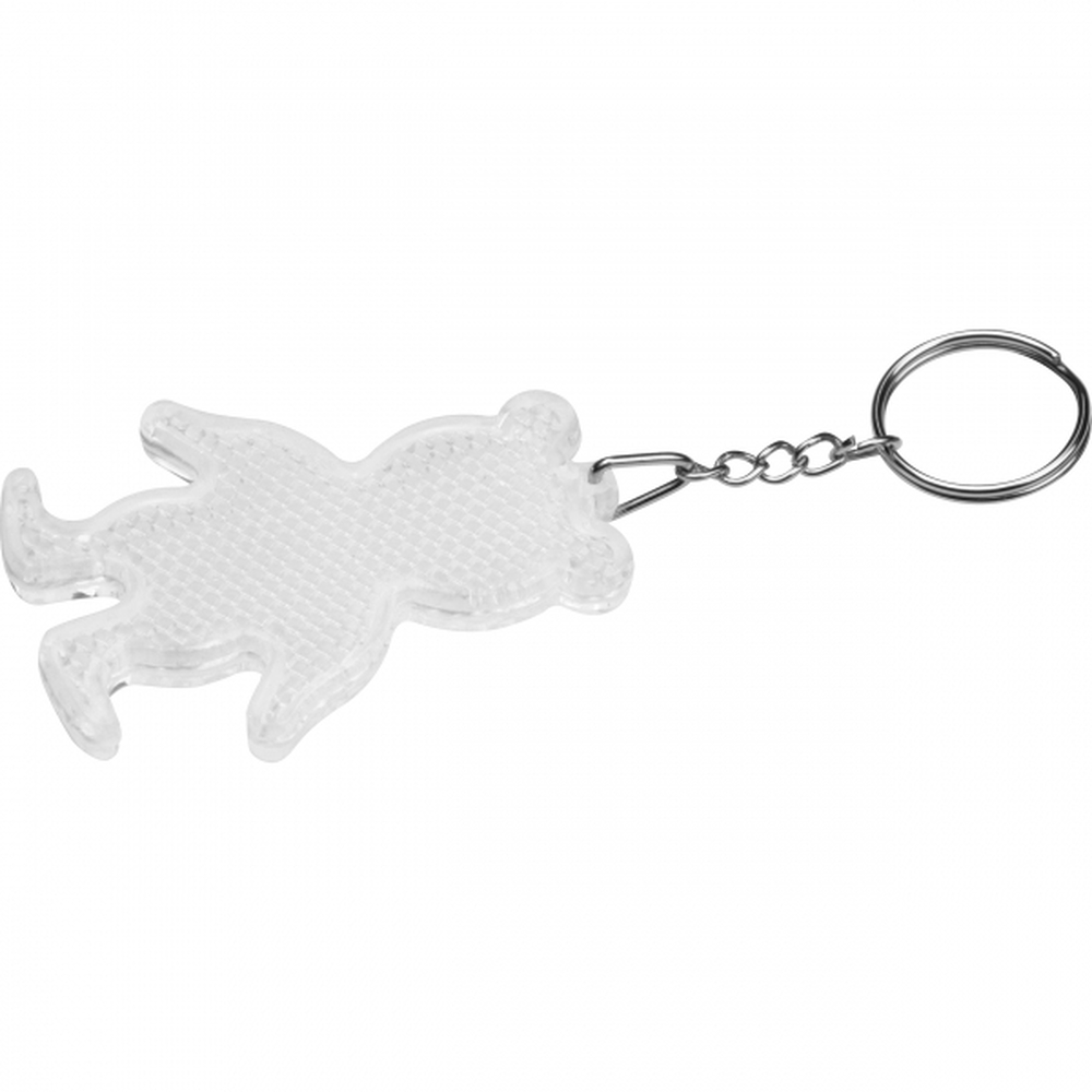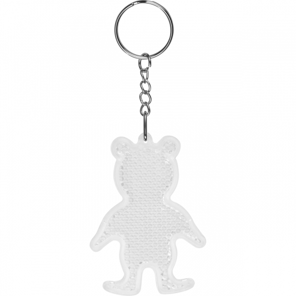 Plastikowy breloczek odblaskowy w kształcie misia.