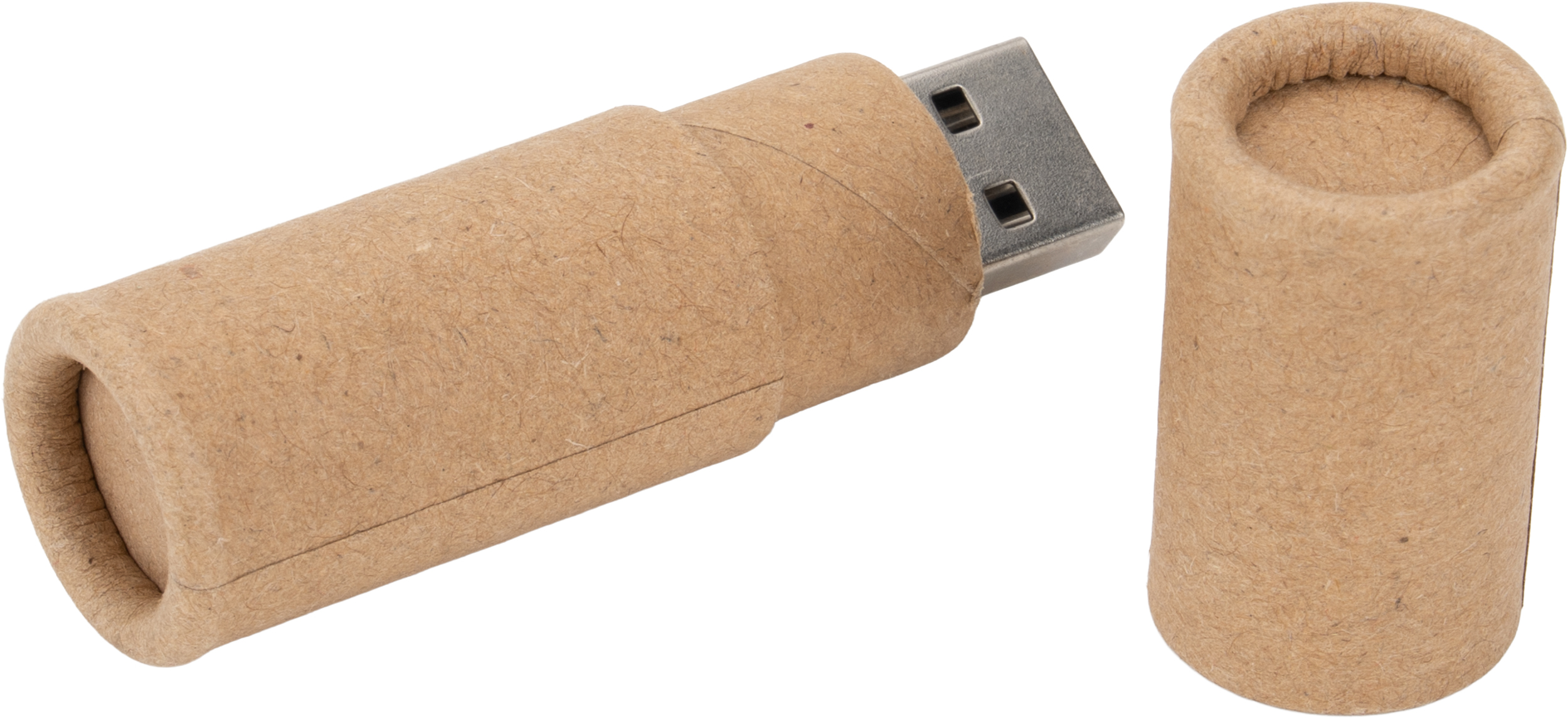 Pendrive w kształcie tuby wykonany z tektury. Możliwość wyboru koloru, pojemności i opakowania. Dostępne pojemności: 8GB, 16GB, 32GB, 64GB, 128GB. Wymiary: 6,9 x 2 cm. Min. ilość zamówienia: 100 szt.