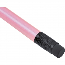 Ołówek z gumką w metalicznych kolorach. Ołówek jest już zaostrzony.